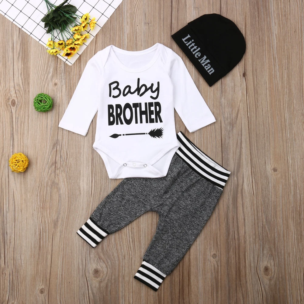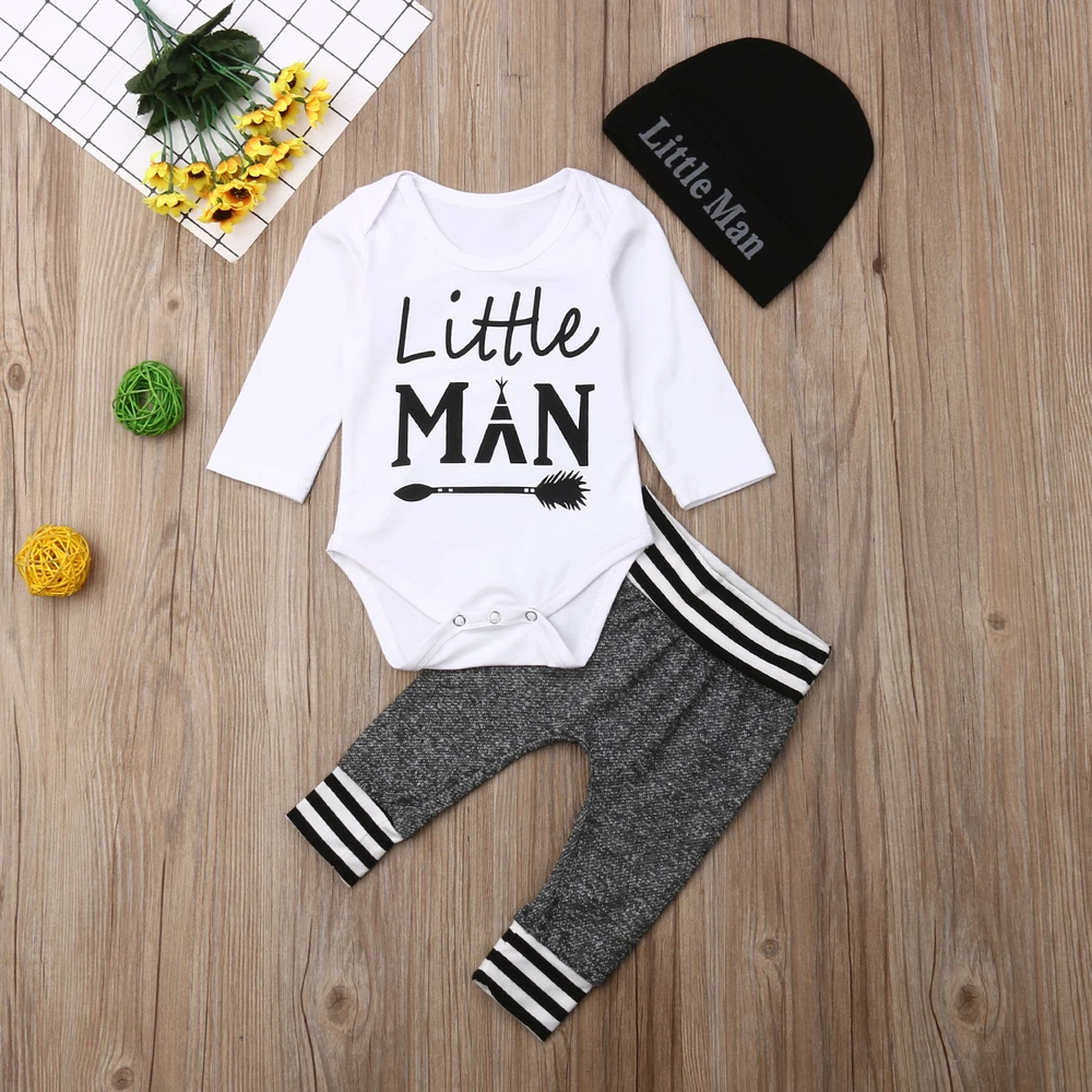 Features: Condition: 100% Brand New Material: Cotton Blend Style:Casual Pattern Type:Letter Collar Type:Round Neck Sleeve Length:Long Sleeve Sleeve Type: Regular Occasion: Casual, Everyday, Party Size chart: Recommend Age Top Length CM Top Length Inch Bust CM Bust Inch Pants Length CM Pants Length Inch 0-3 Months 37 14.54 46 18.06 36 14.15 3-6 Months 39 15.33 48 18.86 38 14.93 6-12 Months 41 16.11 50 19.66 40 15.72 12-18 Months 43 16.90 52 20.44 42 16.51 Package Content: 1 x Jumpsuit 1 x Pants 1 x Hat NOTE: 1.Please compare the detail sizes with yours before you buy!!! 2.Colors may be slightly different depending on computer and monitor settings 3.Please allow 1-3cm differs due to manual measurement, thanks (All measurement in cm and please note 1cm=0.39inch) Thanks for your understanding.