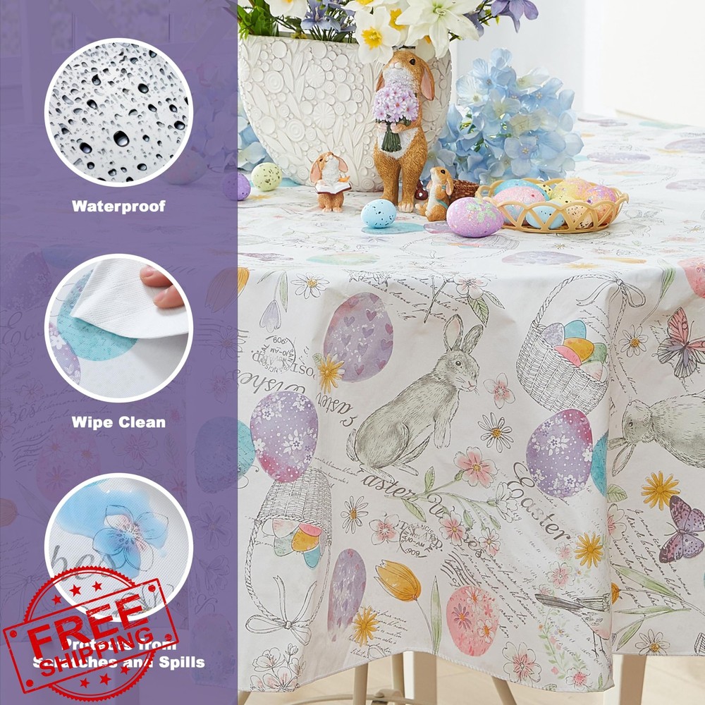Newbridge Spring Easter Bunny Blossom Vinyl Tablecloth 70 Inch Round Features Vinyl Flannel Back Easy Care Wipe Clean Tablecloth Imported Newbridge Bunny Blossom Flannel Backed Vinyl Tablecloth, Egg Basket Floral Vinyl Tablecloth With Flannel Backing, 70 In Round Seats 4 to 6 People STYLING: The Newbridge Bunny Blossom Flannel Backed Vinyl Tablecloth features an eclectic colorful array of spring floral blossoms, bunnies, birds, butterflies, eggs on a an ivory background with printed vintage postcard postage and sayings. FEATURES: Beautiful Easy Care Vinyl Tablecloth for Easter, Spring, Summer, Memorial Day, Mothers Day, Fathers Day, July 4th , Labor Day and Year Round Dining, Entertaining, Parties, Barbecues, Picnics, Restaurants and Cafeterias. Indoor and Outdoor Flannel Back Tablecloths are Easy Care - Just Wipe Clean - No Laundering Needed CARE INSTRUCTIONS: Vinyl Flannel Backed Tablecloth - For best results use mild soap with damp cloth or sponge on vinyl surface of tablecloth. Do not Iron or machine wash or dry. Materials: Surface 100% Vinyl, Flannel Backing: 100% Polyester Shipping Free & Fast Shipping: We offer free shipping to most of the USA with a normal delivery time of 3-7 days. However, due to the current situation, additional delivery time (up to 3 weeks) may be required for some items. Alternative Carriers: We may use alternative carriers (e.g., USPS, FedEx, UPS) to ensure your package arrives safely and on time. Due to the use of multiple carriers, we are unable to provide a tracking number automatically. Handling Time: Orders are processed and shipped within 1-2 business days of receiving cleared payment. Shipping Restrictions: Shipping to Alaska, Hawaii, Puerto Rico, Guam, and other US territories may incur shipping charges or delivery restrictions. Please contact us before ordering, or your order can be refunded/cancelled. State Restrictions: Certain items may not be shipped to California due to state regulations. Contact for Tracking Updates: If you require tracking updates or have any concerns about the delivery of your order, please feel free to contact us, and we will be happy to assist you. Return Policy 30-Day Hassle-Free Returns: If you are not completely satisfied with your purchase, you can return the item for free within 30 days of receiving it for a full refund or exchange. Easy Return Process: Contact us, and we will provide you with a prepaid return shipping label and detailed instructions. No Restocking Fee: There are no restocking fees for returns. However, the buyer is responsible for return shipping costs if the return is not due to a seller"s error. Refund Processing: Refunds will be processed within 1 business day of receiving the returned item in its original condition. Feedback Your feedback is extremely important to us. We strive to provide the best products and customer service possible. If you are satisfied with your purchase, please take a moment to leave us a positive review. If you have any concerns or issues with your order, please contact us before leaving negative feedback. We are committed to resolving any problems and ensuring your satisfaction. Contact Us If you have any questions or concerns, please feel free to reach out to our customer support team. You can contact us through the eBay messaging system. We are available Monday to Friday, 9:00 am to 5:00 pm EST, and we will do our best to respond to your inquiry within 24 hours. Thank you for supporting our small family business! ]]>