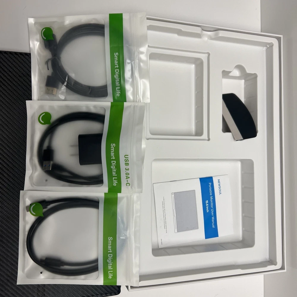 Newsoul MDS-156A08 15.6 in IPS HDR Portable Monitor Built On Speakers. My son used this just one week while on vacation for his PlayStation. Worked great. Comes with all the cables you see in the photos. Please let me know if you have any questions.