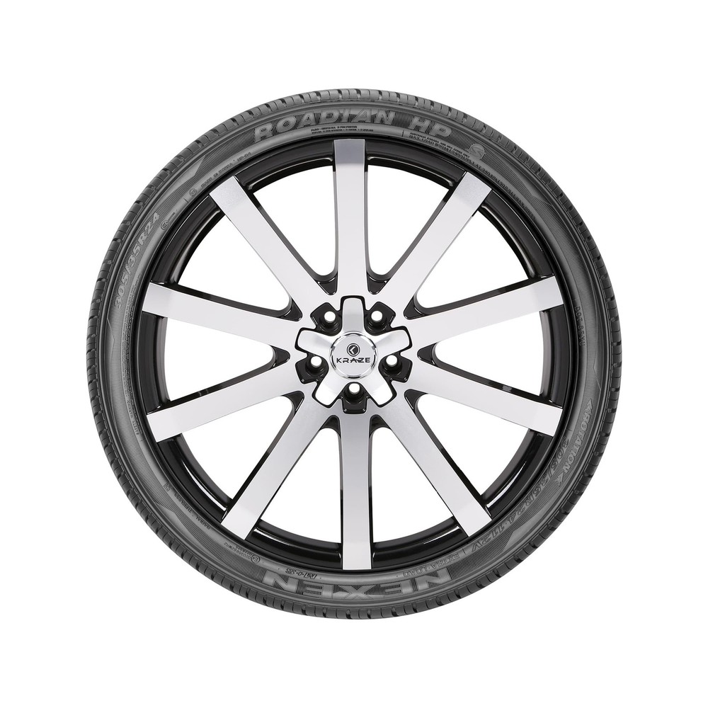 Nexen Roadian HP All- Season Radial Tire-265/35R22 102V Description Who says high performance is only for sporty cars? With the Nexen Roadian HP SUV tire you get strong and stable cornering, steering, and handling for ultimate driving confidence. Made to provide maximum wet traction and braking power with a tread that resists hydroplaning, this tire works hard to give you a safer drive. Add in the Roadian HP’s smooth, quiet ride, and you have a tire that maximizes fun without sacrificing comfort. New Roadside Assistance Program offers free on-the-spot tire changes for three years. The Nexen Total Coverage Warranty now includes a Road Hazard Replacement Program that replaces a tire if damaged under normal wear for one year or first 2/32nds of wear Features: Item Package Dimension: 29.3L x 29.3W x 10.7H inches Item Package Weight - 33.8 Pounds Item Package Quantity - 1 Product Type - VEHICLE TIRE Product Details: Brand: NEXEN Size: 265/35R22 Section Width: 265 Millimeters Load Capacity: 1874 Pounds Tread Depth: 11 32nds Tread Type: Directional Maximum Pressure: 50 Pound per Square Inch Rim Width: 9.5 Inches Tire Diameter: 29.3 Item dimensions L x W x H: 17.58 x 6.26 x 17.58 inches Brand: NEXEN Size: 265/35R22 Section Width: 265 Millimeters Load Capacity: 1874 Pounds Tread Depth: 11 32nds Tread Type: Directional Maximum Pressure: 50 Pound per Square Inch Rim Width: 9.5 Inches Tire Diameter: 29.3 Item Diameter: 29.3 Inches Item Weight: 33.8 Pounds Automotive Fit Type: Vehicle Specific Fit UPC: 887613545605 191563030983 807622545601 826826039853 Global Trade Identification Number: 01, 05 Vehicle Tire ISO Metric Size Description: 265/35R22 Construction Type: Radial OEM Part Number: 15456 Manufacturer: Nexen Model: Roadian HP Item Weight: 33.8 pounds Item model number: 15456NXK Is Discontinued By Manufacturer: No Manufacturer Part Number: 15456NXK Special Features: BW UTQG: 460AA Date First Available: November 30, 2009 Delivery We Do Not Ship Outside of the Continental US. Return Policy All items qualify for returns within 30 days of receipt. Buyer is responsible for return shipping on any item that is not damaged. Feedback We take our reputation seriously, we buy and sell online, so we understand the value of trust. If you are unsatisfied with your order, please contact us and we will work with you to resolve it to your satisfaction.