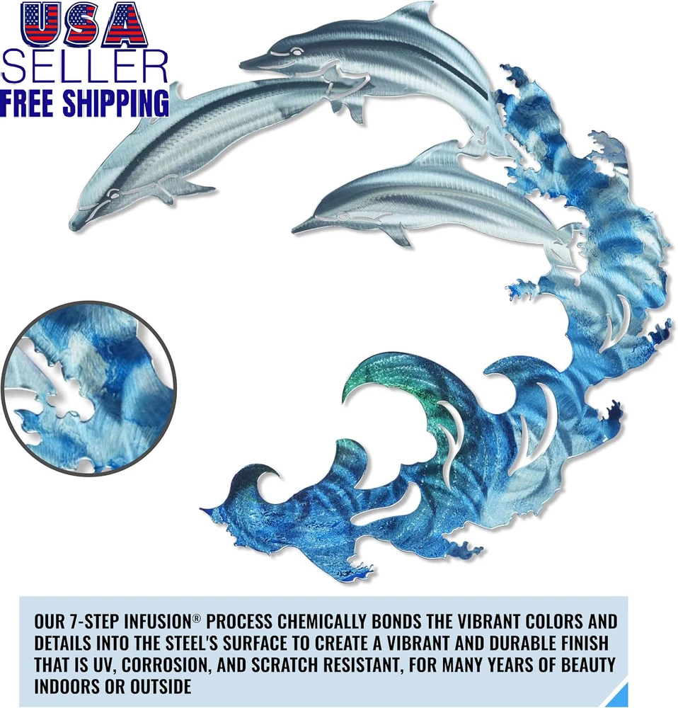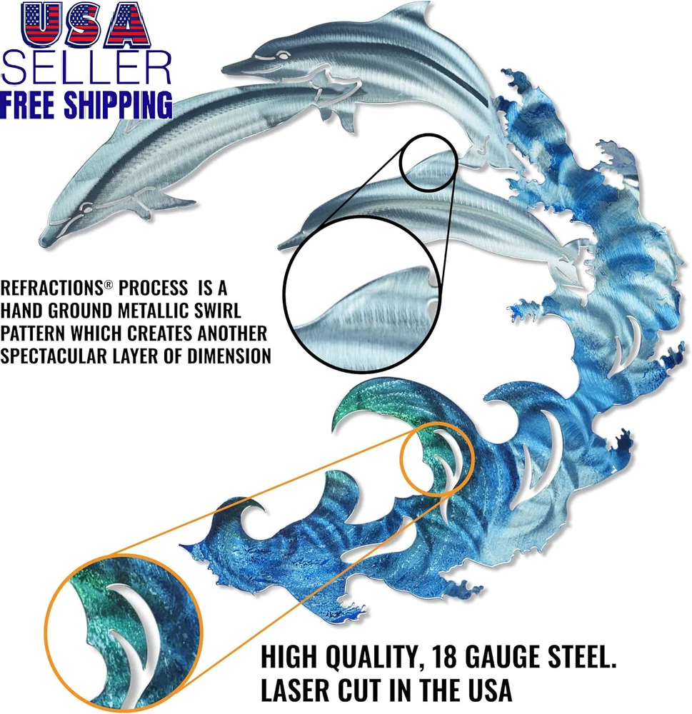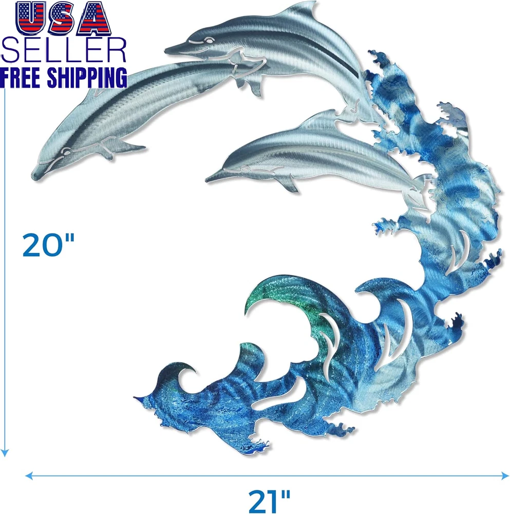 Next Innovations Nautical Wall Art - Dolphin Metal Wall Art, 3D Nautical Decor,