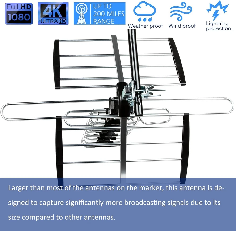 Next-Gen 4K HDTV Antenna with 40ft Coax Cable & Splitter for Multi-TV Support