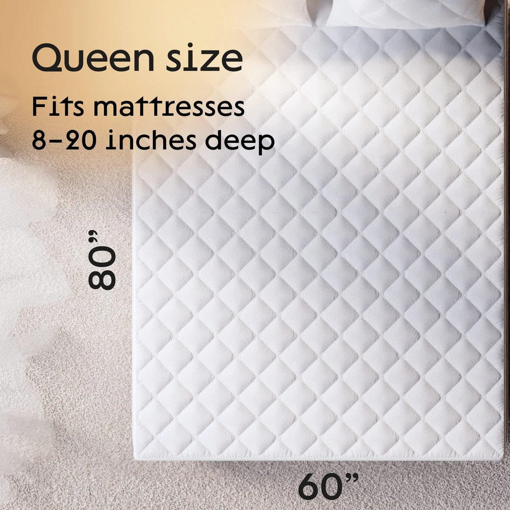 This mattress protector is a game-changer! The 100% cotton fabric feels incredibly soft and breathable, keeping me cool all night. The quilted design adds just the right cushioning, turning my firm mattress into a cozy dream. It fits snugly with deep pockets that stay put, and after multiple washes, it still looks and feels like new. Highly recommended for a peaceful, comfortable sleep!