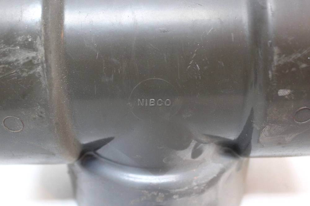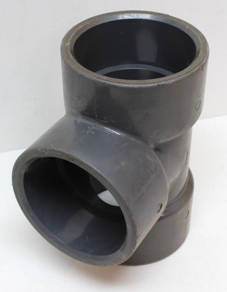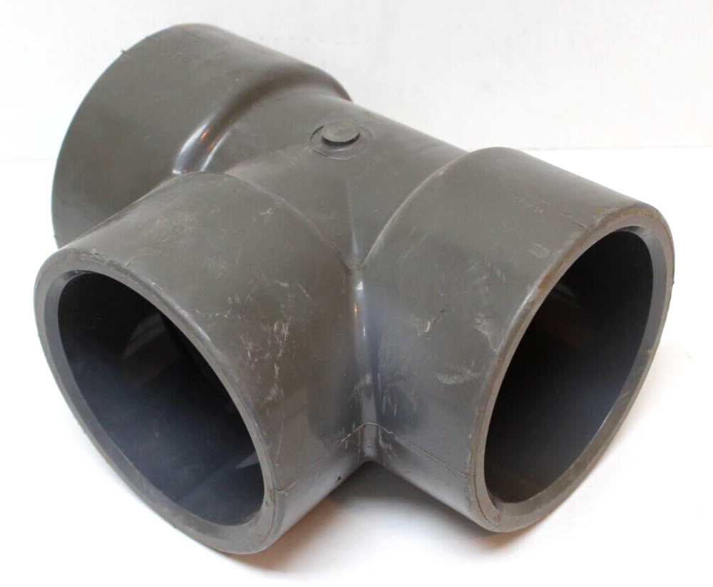This is a Nibco 4" Sch80 Socket Weld PVC Tee fitting. It is a part of the NIBCO brand and is designed for use in hydraulics, pneumatics, pumps, and plumbing applications. The tee allows for a three-way connection with socket weld ends for easy installation.