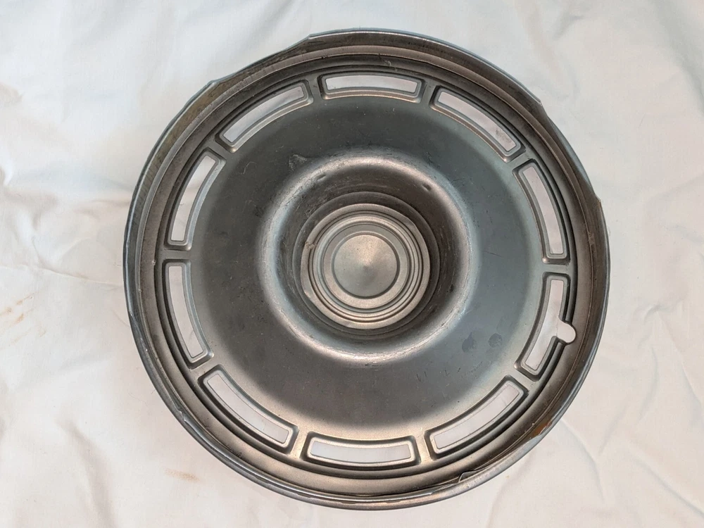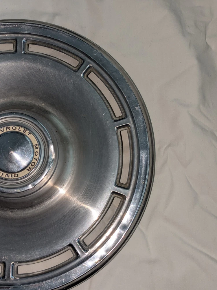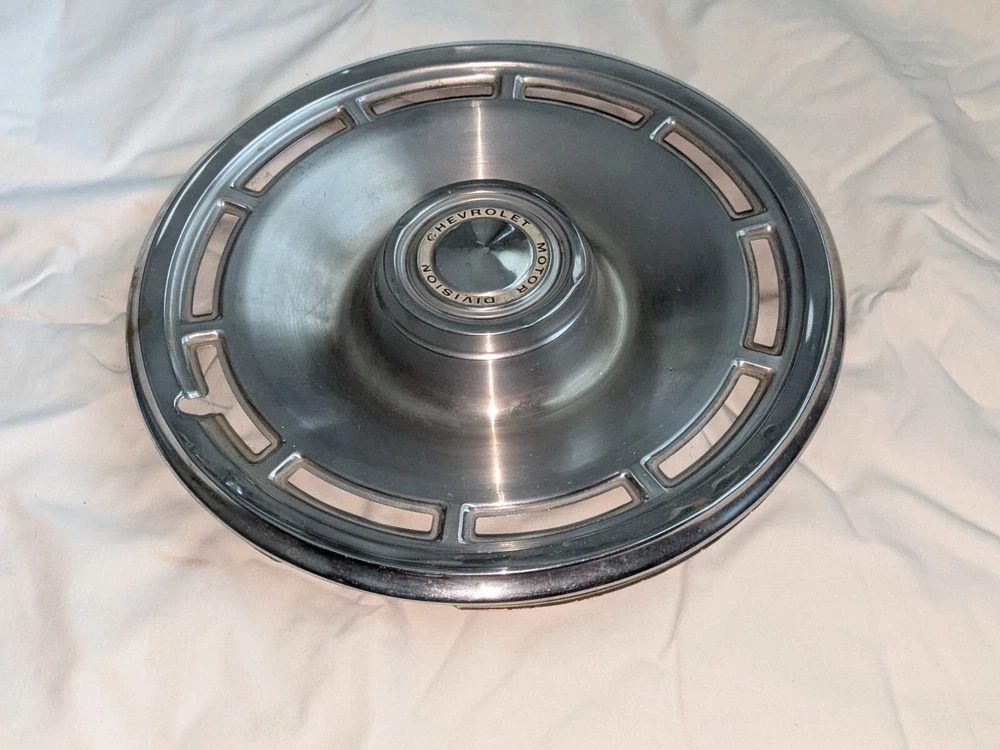 The photos show everything. As far as I know, this is for a 1960s model Chevrolet. Not sure which model, possibly multiple models. This is for a 14-in wheel. The mounting rim on the back side, that you see at the last photo, measures 13.5 in across. This is a very nice hubcap, daily driver quality. Not show quality. You can see the typical dings that you would expect. Please use the zoom feature and ask questions you may have. THIS WILL SHIP USING UPS, FEDEX OR USPS, WHICHEVER I SELECT AT TIME OF SHIPPING.