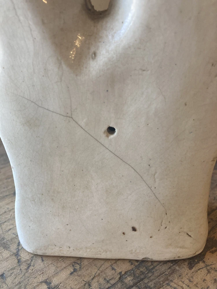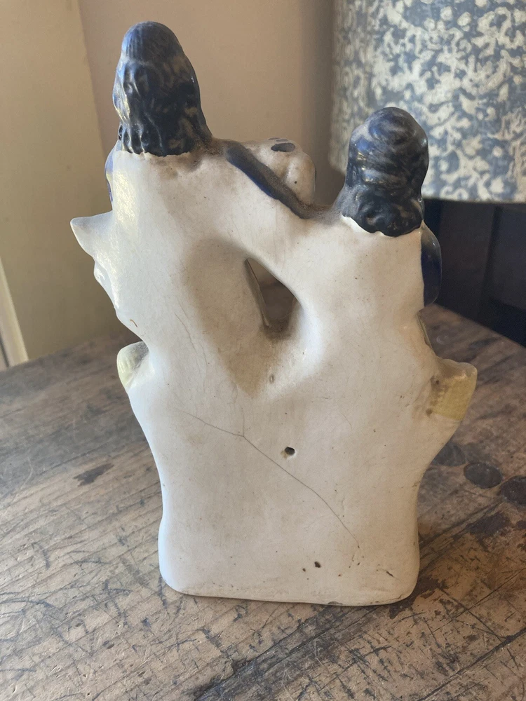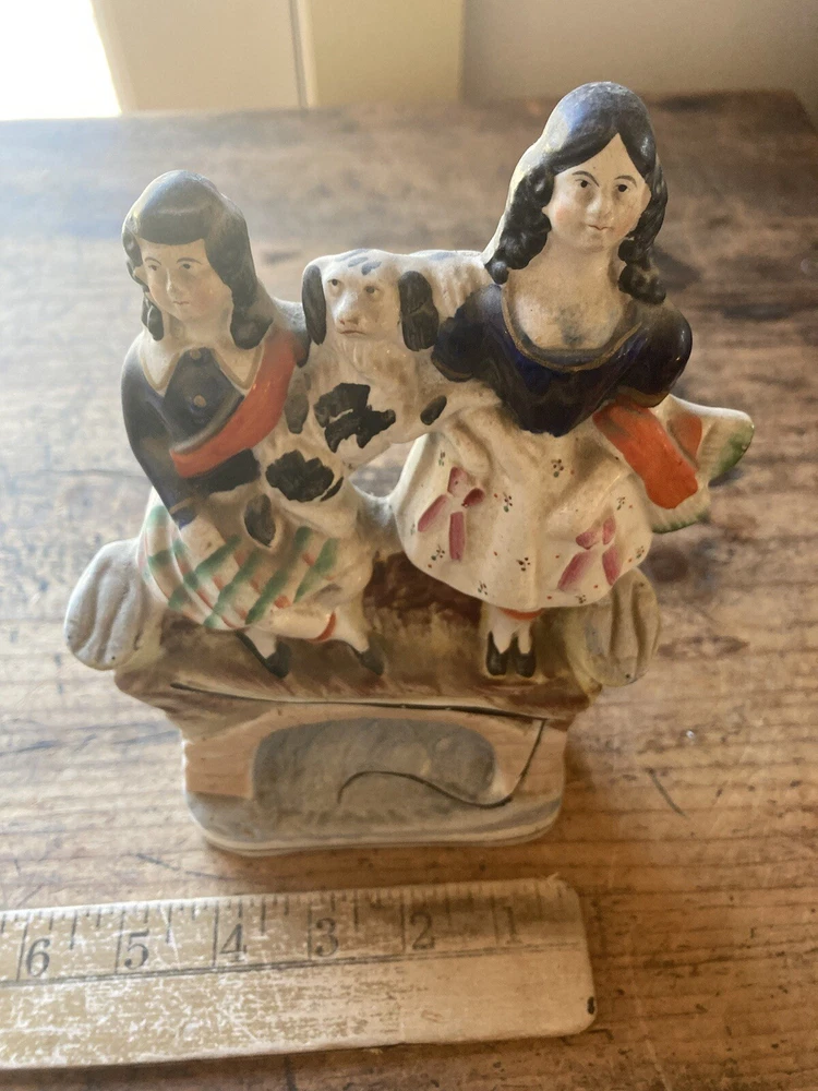 For sale is a nice Antique 19th century victorian era porcelain/ceramic/Staffordshire figurine. It features a boy and the girl with their dog. Below them there seems to be a motif of horse wip. A nice example of early ceramic work. Each figurine measures 8.5” tall, 4.5” wide. It is in good antique condition with a very tight hairline crack. See picture. appropriate surface wears and manufacturer imperfections are to be expected. Please check photos from all angles for details. Overall, it is a nice piece of early Victorian era ceramic artwork that would fit well in any antique collectors home. Ship with careful packaging and full insurance. Feel free to check out my other antique and collectible listings. I gladly combine shipping whenever practical.