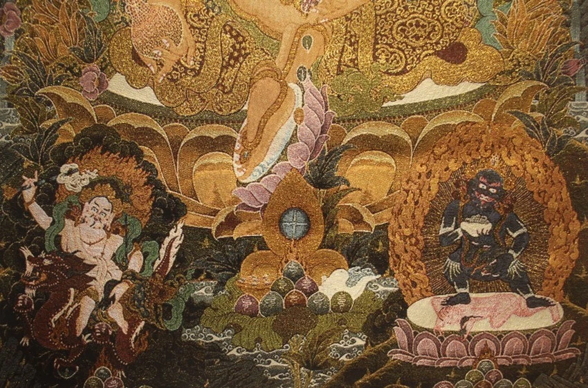 - Nice Chinese Tibet Buddhism embroidery Brocade Tapis Thangka Tangka "Yellow Kubera" - Size : 34 x 22 inches (1 inch = 2.54 cm) Material : Silk Strong Package - Free Express Delivering Returns Policy : 30-days Return Yours Satisfaction is My Best Success I am an honest Himalayan Arts dealer - Focusing on this for almost thirty years I'm glad to share my collection with friends from all over the world Please feel free to let me know if there are any question Tashi Delek