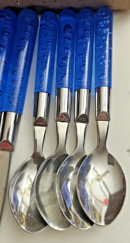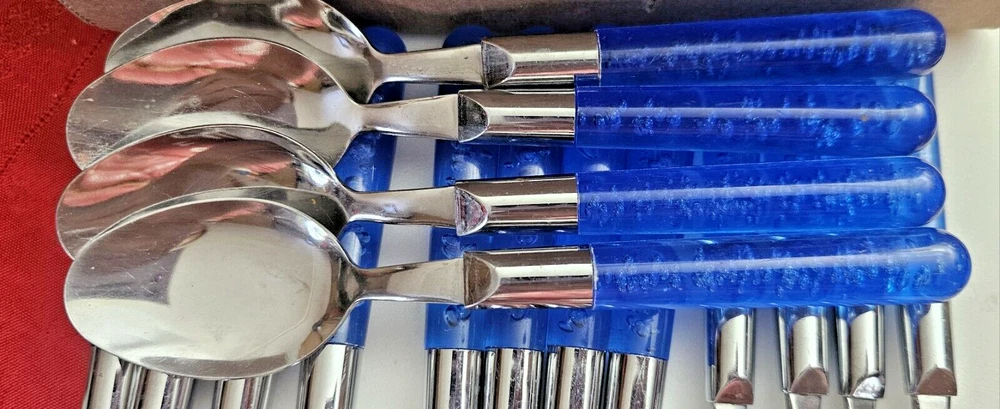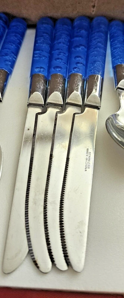 This is a set of four stainless steel flatware pieces made in China. The set includes spoons, knives, and teaspoons. These pieces are versatile and can be used for everyday dining or special occasions. The material is durable and long-lasting, ensuring that you will be able to use these pieces for years to come. Add this set to your kitchen collection and enjoy the convenience and style it brings to your dining experience.