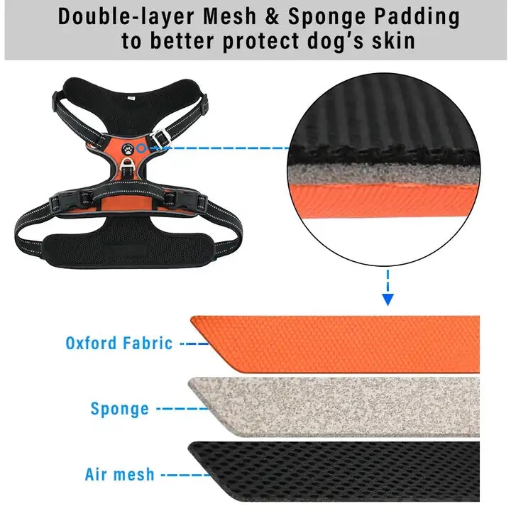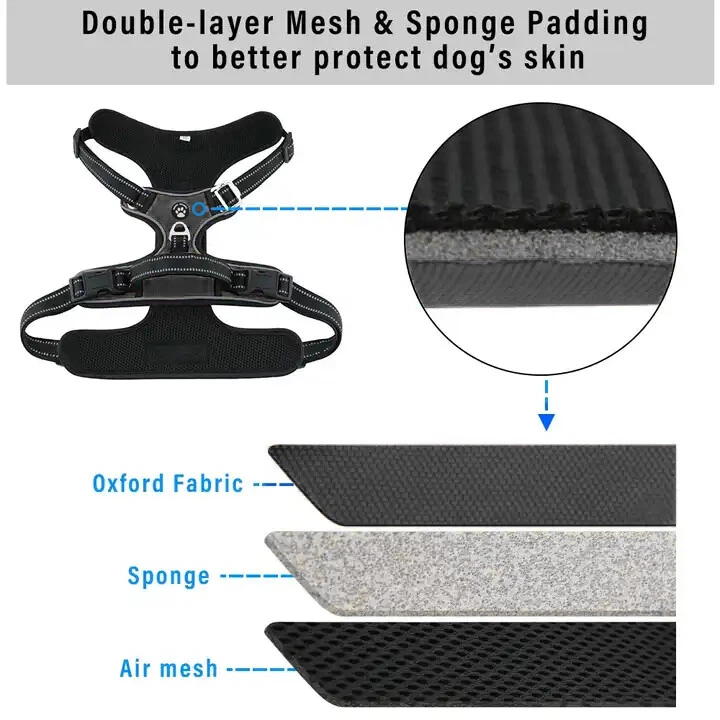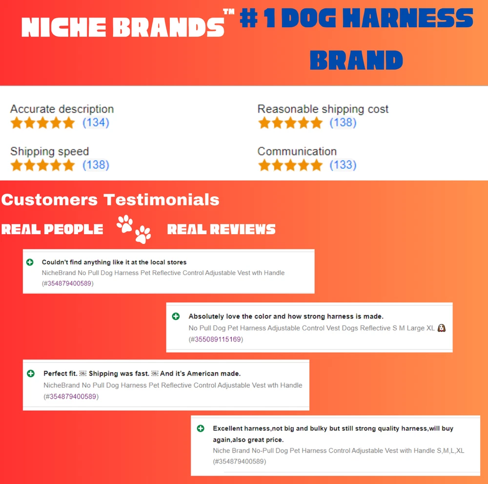 Niche Brands™ No-pull No-Choke dog harness is the ultimate solution for dog owners who want to keep their furry friends safe and comfortable while walking. Made with high-quality materials and featuring a unique design , this harness distributes pressure evenly across the chest and back to prevent choking and pulling on your dog's neck. The padded chest panel and adjustable sizing ensure a secure and comfortable fit for dogs of all sizes, while the reflective strips keep your dog visible in low light conditions. The easy-to-use buckle and leash attachment make it a breeze to put on and take off, even for the most active dogs. Adjustable Weight Pulling Harness Dog Harnesses Best Holiday Gift you could give to your Dog. Holiday SALE - 5% Off Product Description 🐶 [ NO PULL - CHOKE RESISTANT ] - NICHE BRANDS Designer non-pull adjustable dog harness with handle features RUSTPROOF Zinc Alloy dual metal D-rings, on both sides of the dog vest. The front D-Ring helps redirect your dog's forward motion, and the back ring is perfect for a casual dog walk, jogging, hiking, training. The four Adjustable straps fit various dogs with different body shapes. With 2 easy buckles on belly straps and 1 more lockable quick release buckle on the neckline, you don’t need to slip over the dog’s head to adjust the straps all the time. 🐶 [ Pet-friendly REFLECTIVE Material ] - Our durable dog vest is made of 1200D Oxford Fabric with sturdy stitching, suitable for long-time use. Breathable padded mesh design keeps air circulation around your dog’s body and protects your dog’s skin during outdoor activities. Reflective/Lighted straps guarantee you a safe and wonderful late-night walk 🐶 [ FIT for All ] - The harness comes in different sizes and fits SMALL/MEDIUM/LARGE/XL size fur friends. Refer the sizing guide for neck and chest girth and get the purrfect size for your furry friend. Large Dog Harness fits even the fluffiest dog 🐶 [ EASE TO USE AND SECURE LOCKING ] - The dog harness with simple design, Front clips and quick snap buckles which make it easy to put on and take off. Locking feature on both snaps makes it more secure, 100% ensures NO accidental detachment. 4 easy size adjustors at neck and chest for easy adjusting to fit your dog perfectly, even with some room of growth. Perfect training vest for daily walking, running, hiking, training, hunting, outdoor adventure and more! 🐶 [ EASY CLEANING ] - Harness material is dust resistant and Machine washable and hence easy for daily use. All metal accessories are rust-proof and provides long term Durability. 🐶 [ DURABILITY ] - Made of durable nylon webbing, enhanced high density nylon oxford, breathable mesh lining and strong accessories including buckle, size adjustors making it the best harness for dog. 🙏 Customer Service - Our customers’ amazing shopping experience is always our Priority. If you have any problems while using our products, please feel free to let us know. Our customer service will effectively solve your problem in 24 hours. Niche Brands pet supplies is a company that is passionate about providing high-quality, unique and innovative products for pets. Our mission is to create a brand that pet owners can trust and rely on for their pet's needs. We understand that every pet is different and has unique needs, which is why we offer a wide range of products that cater to different lifestyles and preferences. Package includes: 1 x No Pull Dog Pet Harness Adjustable Control Vest Dogs Reflective S M Large XL Shipping Information: Free shipping - Your item Ships Same Day to 1 Business Day