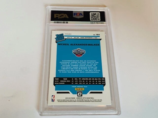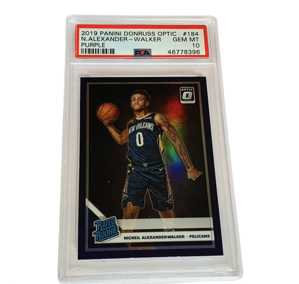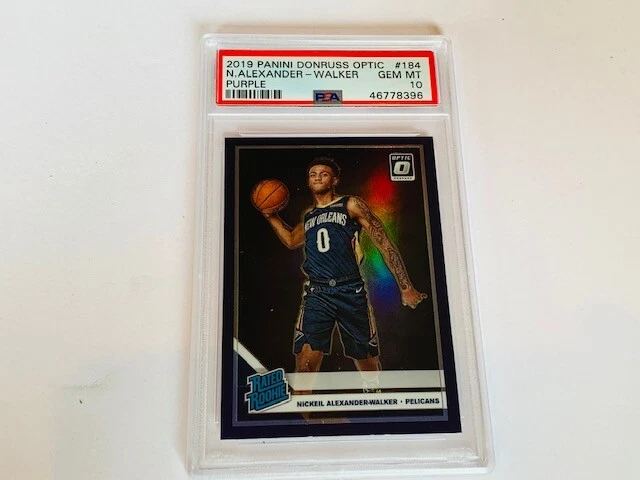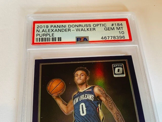 Absolutely awesome and highly collectible RARE 2019 Panini Optic Purple Nickeil Alexander Walker Rookie Graded PSA 10 LOW POP. See all pictures for amazing condition, size, and detail. There are absolutely no returns on graded sports cards as you know exactly what you are getting because it is professionally graded and the market for sports cards changes literally on a daily basis. Check out my store for some of the rarest vintage collectibles online from all eras. Thanks for looking and have a great day! :)