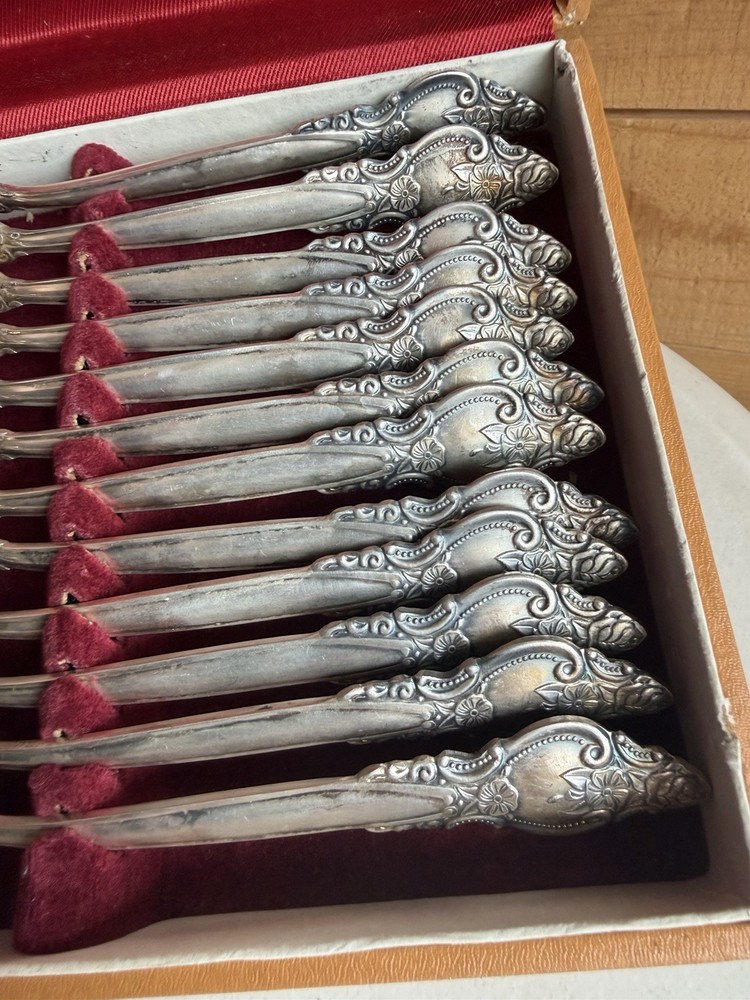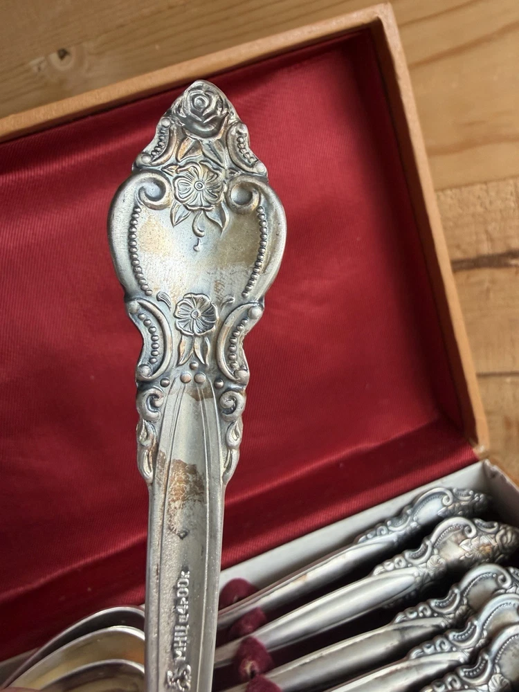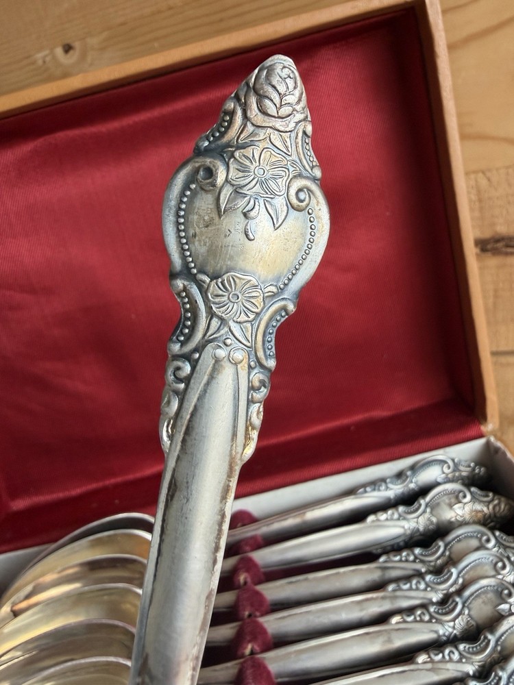 Nickel Silver Spoons Russian Vintage Collection МНЦ ц 4Р 00К VTG Spoon Set (12) Set of 12 in box. Set shows age and wear. See photos for details.
