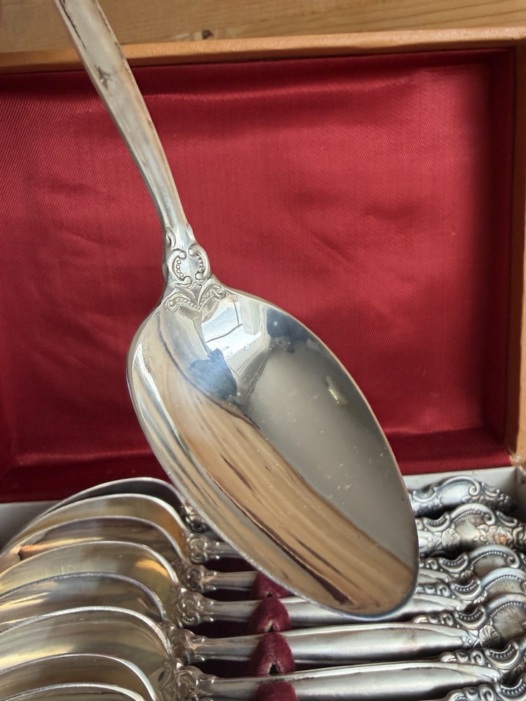 $ 21.1Vtg 144 Piece Bangkok Thailand Bronzewear Flatware 12 Person Service set W/Case