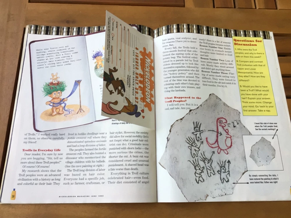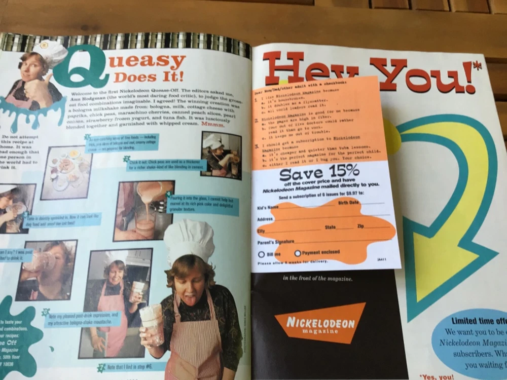 The premiere issue of Nickelodeon magazine! Ren and Stimpy’s summer swimsuit issue. I just found this in my childhood collection and it’s pretty amazing! A quick bit of research shows that the stickers are missing. As is condition. Thanks for looking!