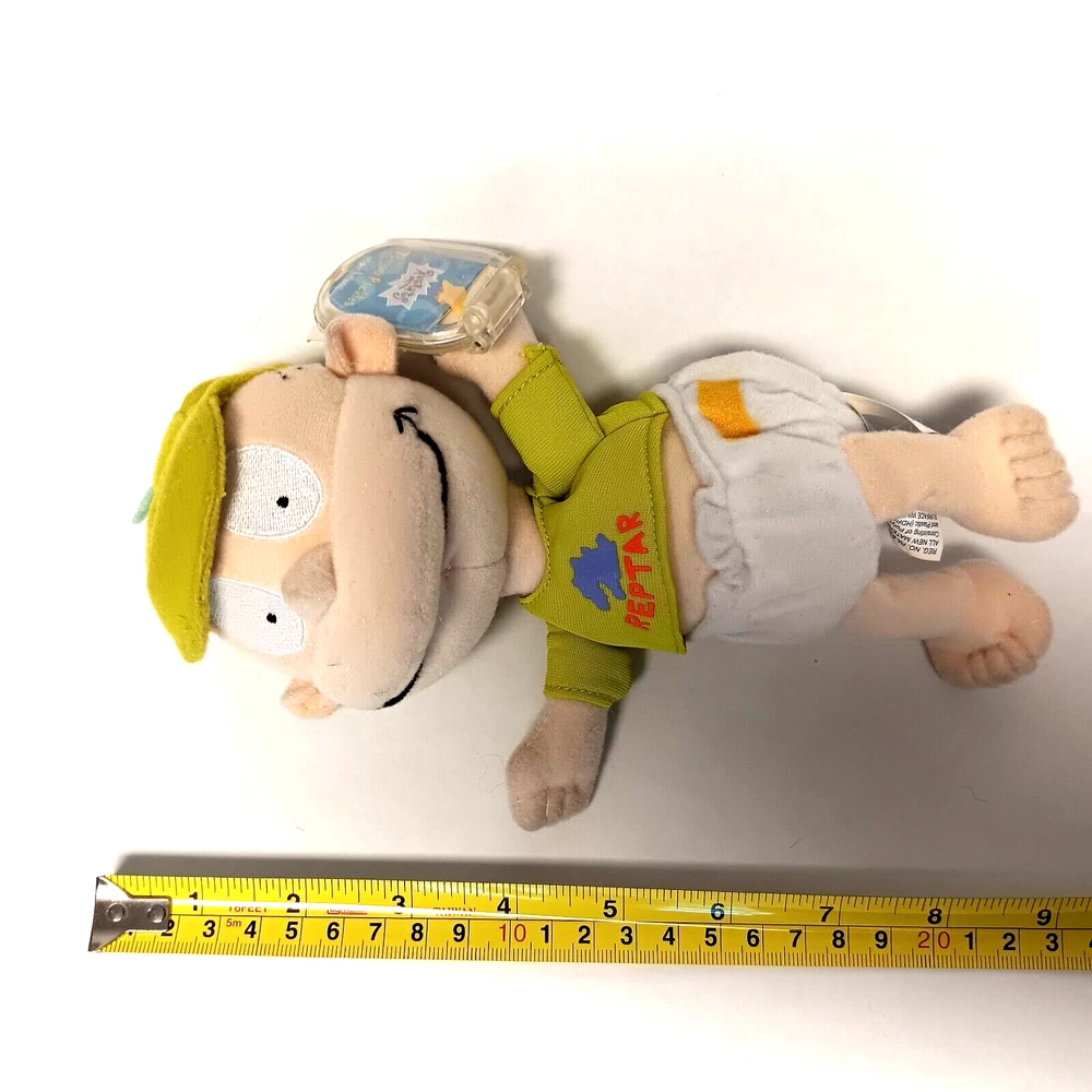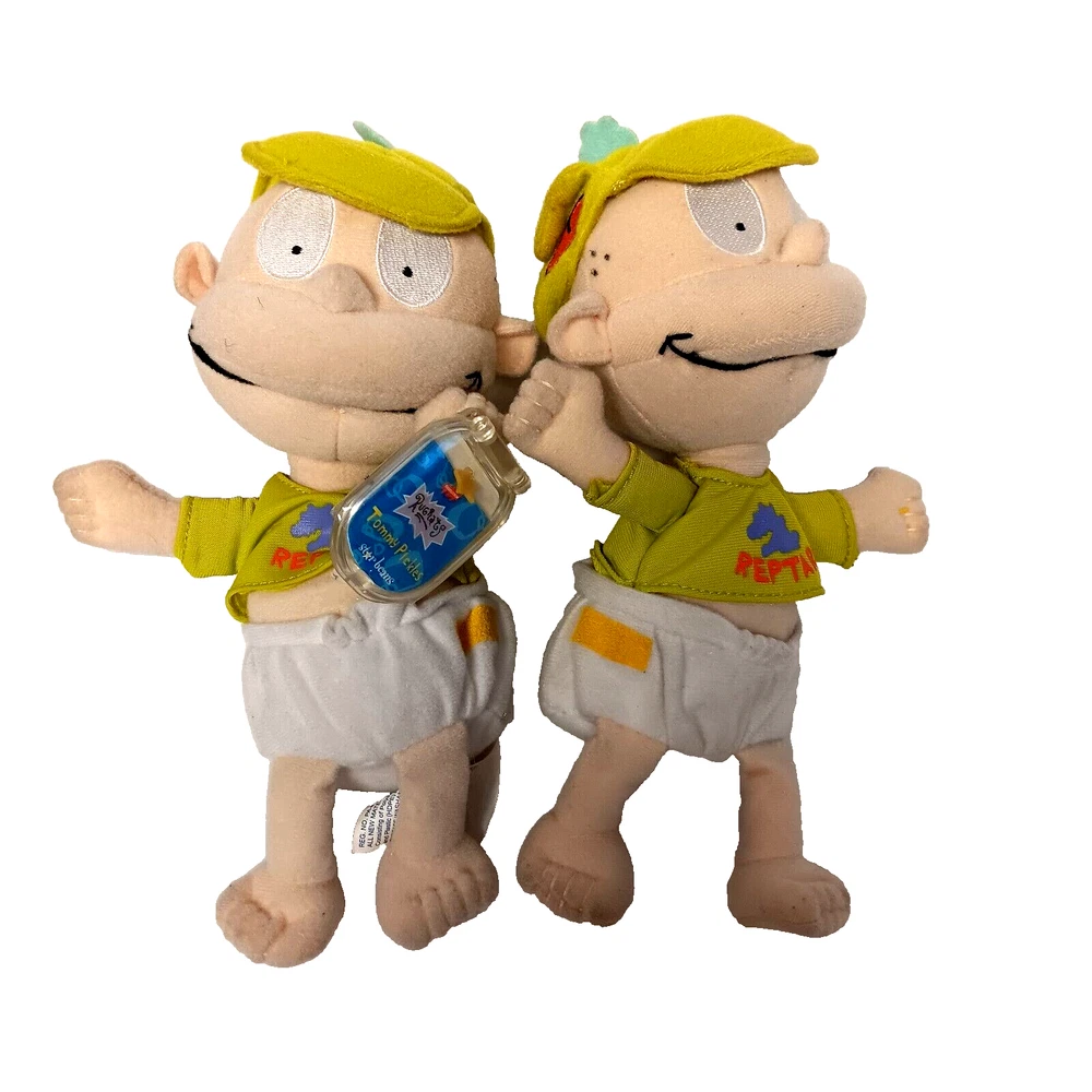 This vintage lot of Rugrats plush toys includes Chuckie Finster, Reptar, Angelica, Tommy Pickles, and more. These small (6-14 in) stuffed animals come in multicolor designs and were manufactured in China by Mattel in 1998. The set is perfect for all occasions and features retired characters from the popular Rugrats franchise. Each plush toy in this lot is in great shape and ready for display or play. Whether you're a collector or just looking for some nostalgic fun, this Rugrats plush collection is sure to delight. Don't miss out on the chance to own these classic stuffed animals. Rugrats Set of Five Plush Chuckie Finster Reptar Angelica Tommy Pickles 1998 VTG Tommy Pickles New with Tag and Tommy Pickles pre-owned Angelica Pickles pre-owned, one has tag that is not attached Chuckie Finster with raptor outfit pre-owned Approximately 9 inches x 6 inches See photographs for condition and measurements Mattel Star Bean Viacom Nickelodeon Good condition Total 5 plush toys 1829KF Vintage