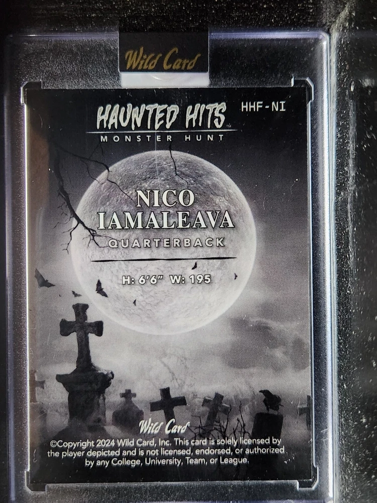 Set: 2024 Wild Card Haunted Hits Manufacturer: Wild Card Player/Athlete: Nico Iamaleava Features: Parallel/Variety, Rookie, Serial Numbered, ssp Type: Sports Trading Card Season: 2024 Sport: Football Team: Tennessee Volunteers Parallel/Variety: Cracked Ice League: National Collegiate Athletic Association (NCAA)