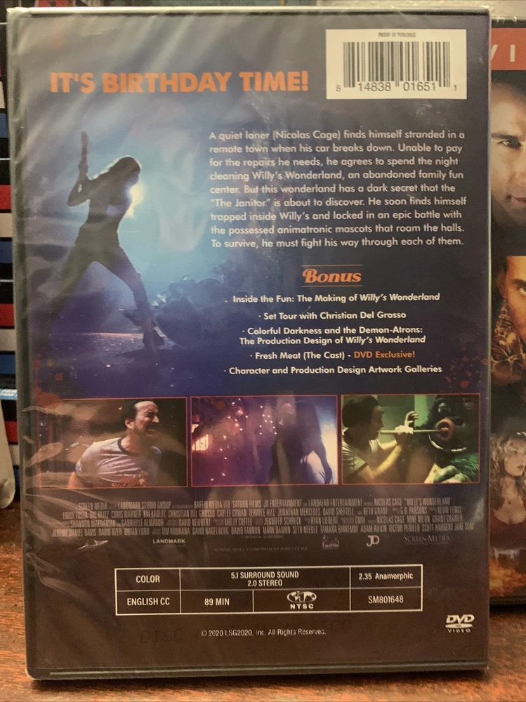 Nearly nine hours of Nicolas Cage! Prisoners of the Ghostland Languishing in the lockup of the garish Samurai Town, career criminal Hero (Nicolas Cage) has a shot at a pardon from The Governor (Bill Mosely) if he can invade neighboring, nuked-out Ghostland and rescue precious, abducted sex worker Bernice (Sofia Boutella). To make sure he stays on mission, our protagonist is fitted out with an explosives-laden suit that'll blow if he deviates. Expectedly out-there English language bow for director Sion Sono co-stars Nick Cassavetes, Tak Sakaguchi. 100 min. Widescreen; Soundtrack: English. Willy's Wonderland With his car broken down in the Nevada desert, a quiet drifter (Nicolas Cage) didn't have any options for cash past an after-hours janitorial job at a condemned family entertainment center. Unfortunately for him and a gaggle of trespassing teens, the facility's eight animatronic mascots came to murderous life-and it doesn't look like they'll win enough tickets to see the morning. Outrageous horror-comedy actioner also stars Emily Tosta, Beth Grant, Ric Reitz, Grant Cramer. 82 min. Widescreen; Soundtrack: English. Face/Off At his best, director John Woo turns action movies into ballets of blood and bullets grounded in character drama. Face/Off marks Woo's first American film to reach the pitched level of his best Hong Kong work (Hard-Boiled). He takes a patently absurd premise--hero and villain exchange identities by literally swapping faces in science-fiction plastic surgery--and creates a double-barreled revenge film driven by the split psyches of its newly redefined characters. FBI agent Sean Archer (John Travolta) must play the villain to move through the underworld while psychotic terrorist Castor Troy (Nicolas Cage) becomes a perversely paternal family man while using every tool at his disposal to destroy his nemesis. Travolta vamps Cage's tics and flamboyant excess with the grace of a dancer after his transformation from cop to criminal, while Cage plays the sullen, bottled-up agent excruciatingly trapped behind the face of the man who killed his son. His attempts to live up to the terrorist's reputation become cathartic explosions of violence that both thrill and terrify him. This is merely icing on the cake for action fans, the dramatic backbone for some of the most visceral action thrills ever. Woo fills the screen with one show-stopping set piece after another, bringing a poetic grace to the action freakout with sweeping camerawork and sophisticated editing. This marriage of melodrama and mayhem ups the ante from cops-and-robbers clichés to a conflict of near-mythic levels. Snake Eyes Set in Atlantic City, an assassination attempt thrusts a detective (Nicolas Cage) into a murder case with 14,000 potential suspects and a deadly conspiracy where nothing is what it appears to be. (English), Set in Atlantic City, an assassination attempt thrusts a detective (Nicolas Cage) into a murder case with 14,000 potential suspects and a deadly conspiracy where nothing is what it appears to be. Next Las Vegas showroom magician Cris Johnson has a secret which is a gift and a curse which torments him: he can see a few minutes into the future. Sick of the examinations he underwent as a child and the interest of the government and medical establishment in his power, he lies low under an assumed name in Vegas, performing cheap tricks and living off small-time gambling 'winnings.' But when a terrorist group threatens to detonate a nuclear device in Los Angeles, government agent Callie Ferris must use all her wiles to capture Cris and convince him to help her stop the cataclysm.