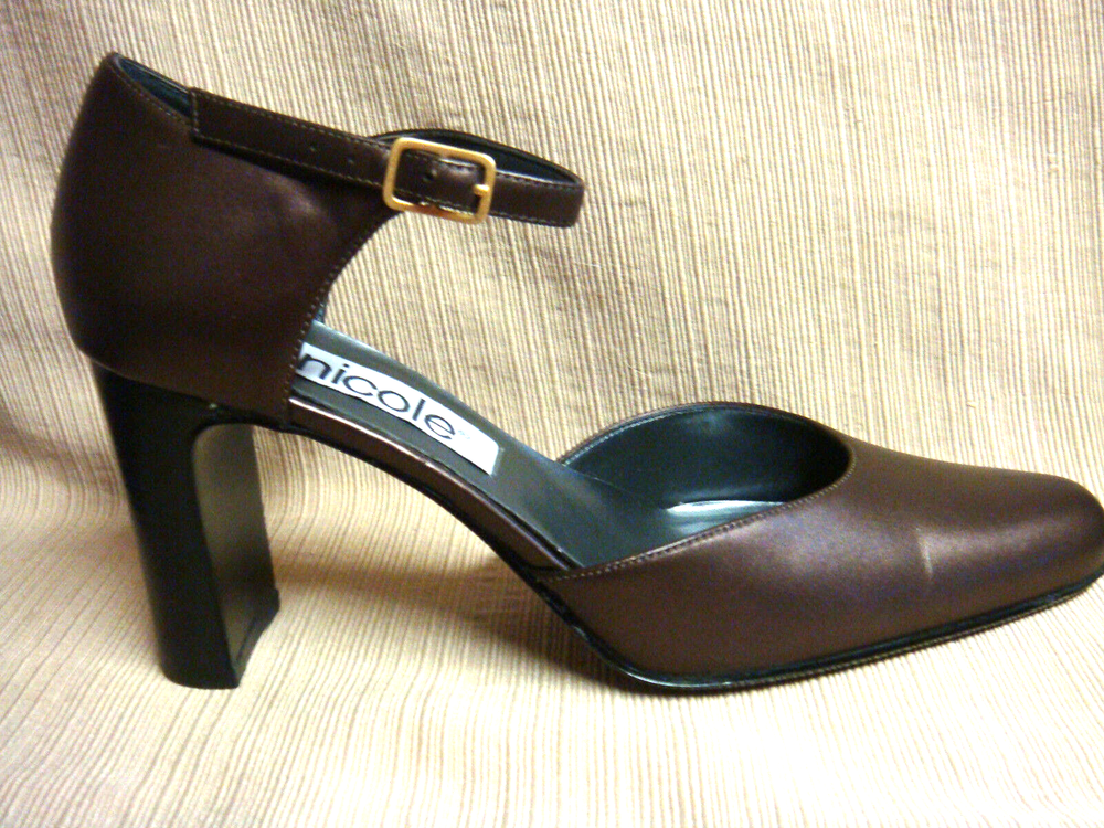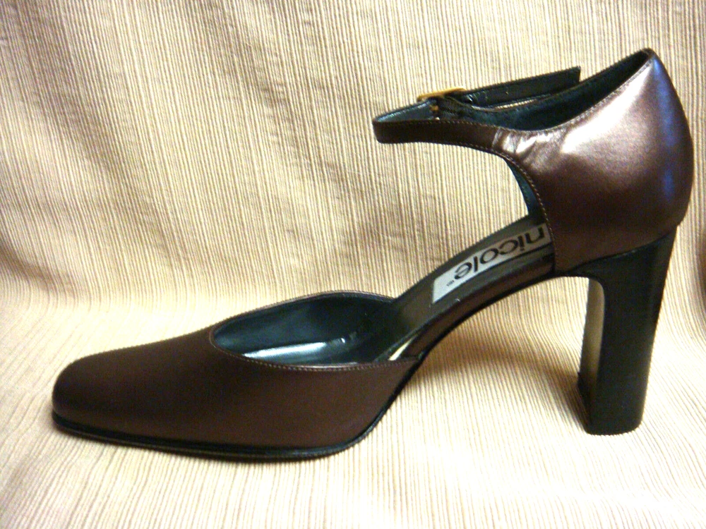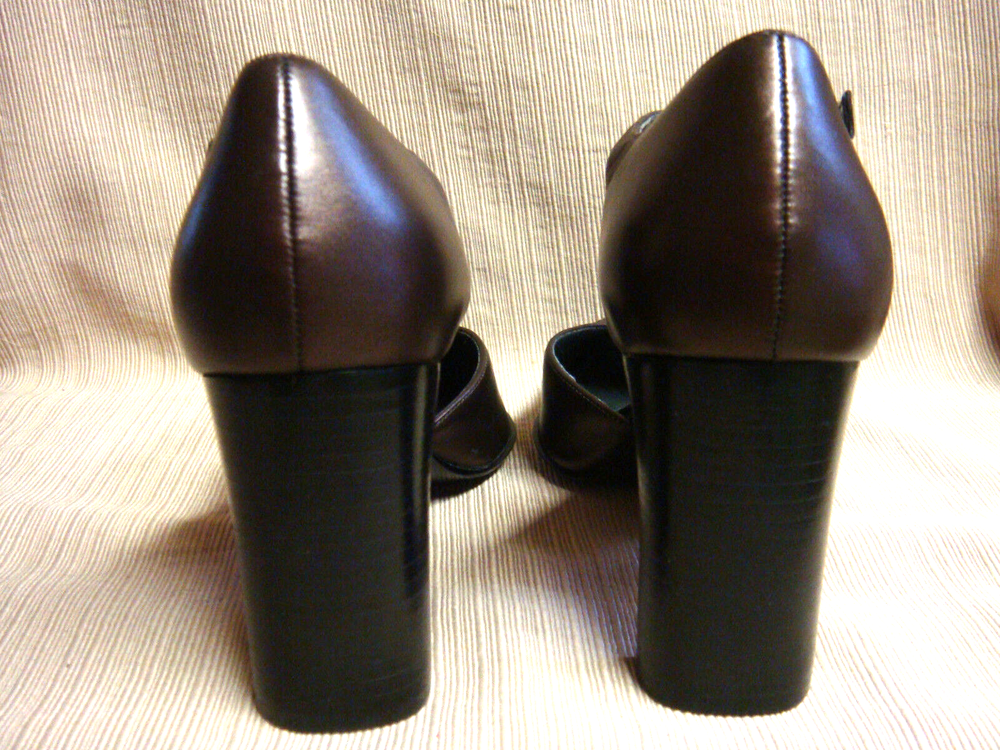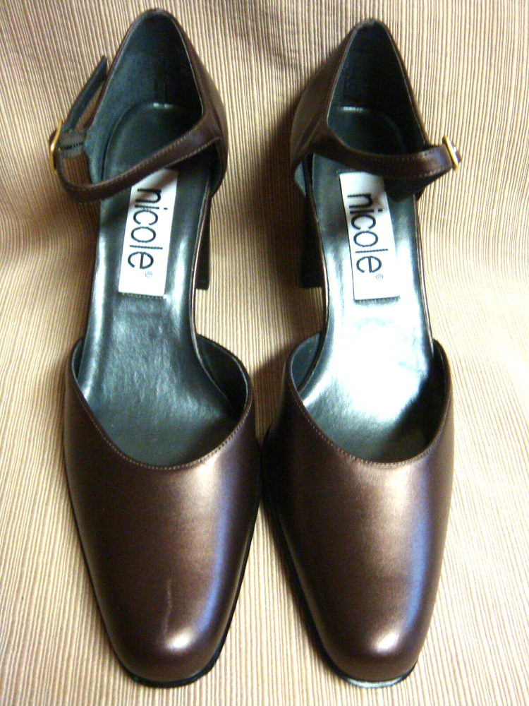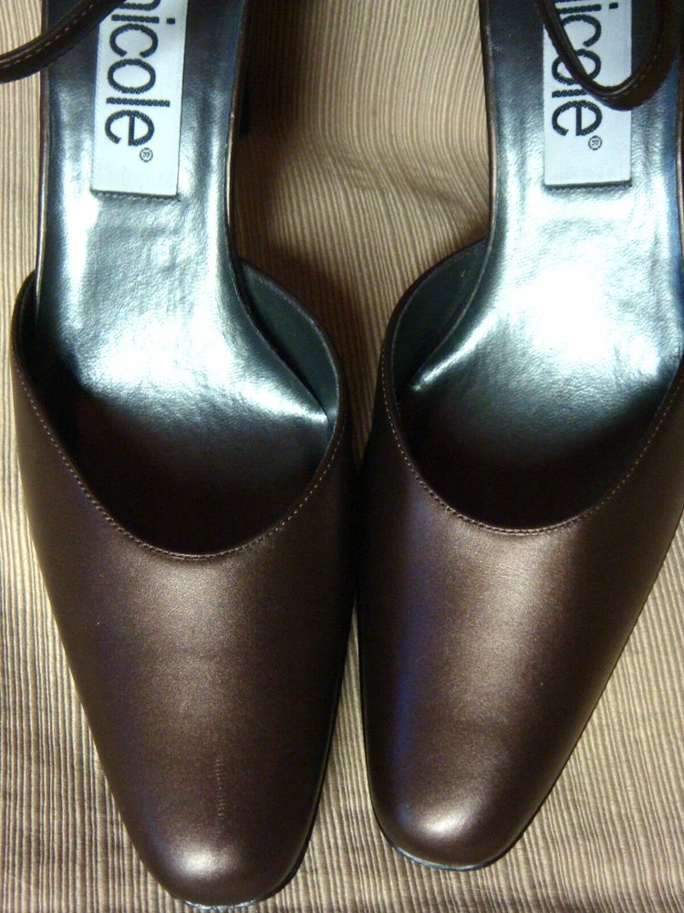 As can be seen in the ten photos, these shoes are brand new. (There is a scoff on the toe of the right shoe that I have tried to show in the photos.) The size is 7 1/2 & actual length is 10". Heels are 3".