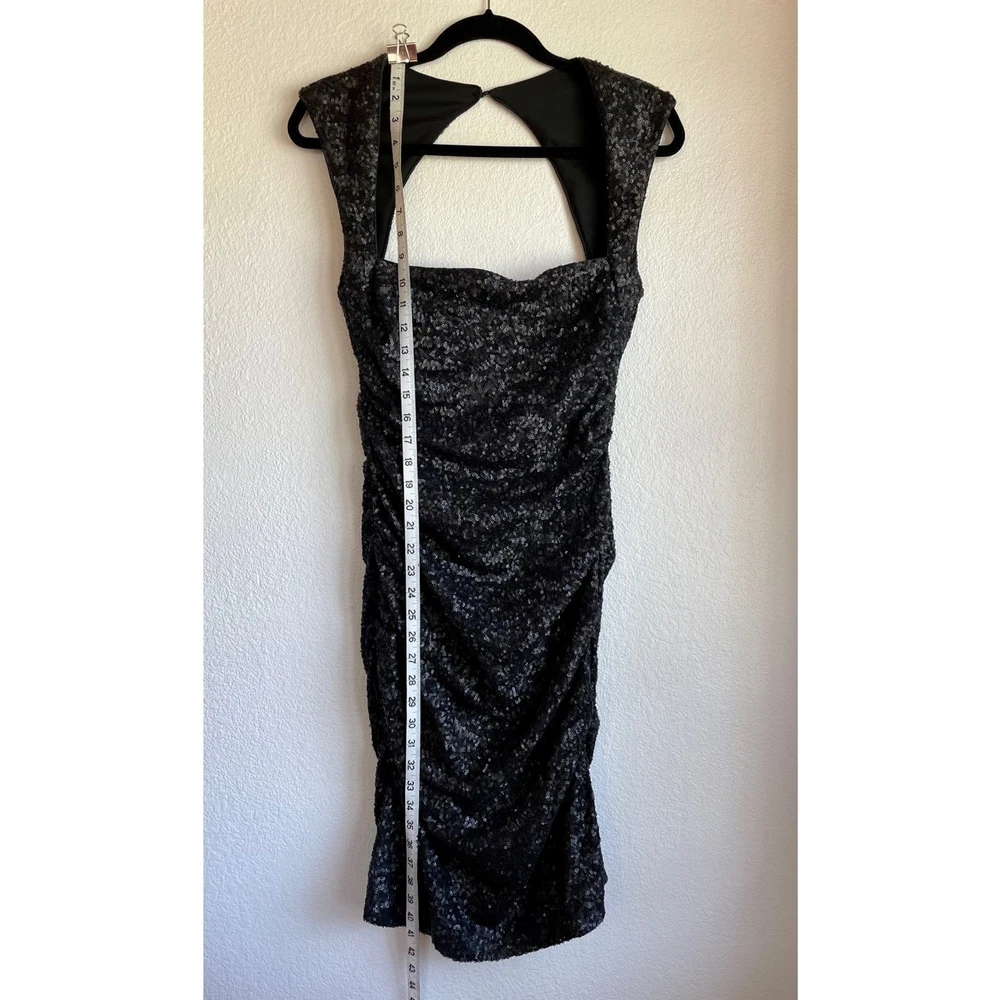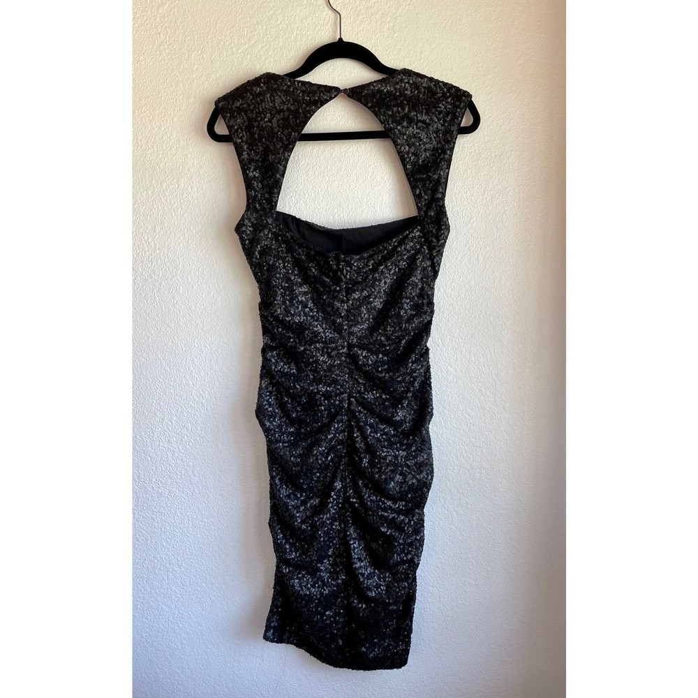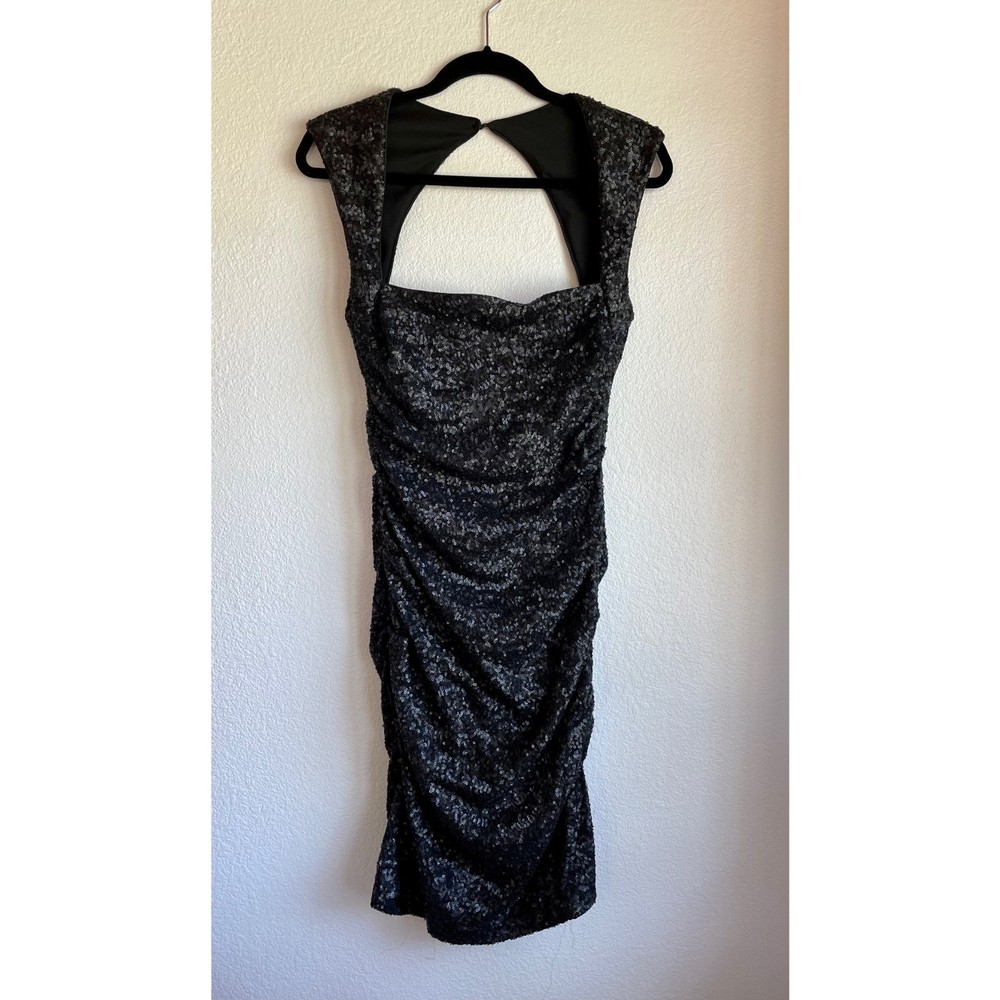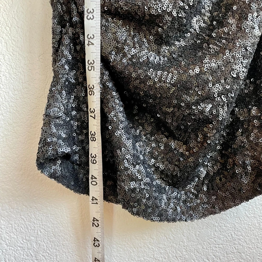 EUC - no stains, holes, pulls or pilling. All sequins are intact. Excellent condition. Turn every head in the room in our sequin ruched sheath dress. Made with matte black metallic sequins and featuring a cut-out style back and square neckline. This knee-length dress in sure to turn heads. Pair with strappy heels for your next event. 100% Polyester Sizing varies from brand to brand, please use measurements in photos to decide if this will fit. Unless otherwise specified, this is a preowned item with normal signs of wear. There is no notable damage or stains. Please see all photos for exact item condition. Wash to wear. Ships from a smoke-free home! Thanks for checking out my store! All items ordered before 10am PST ship same day. Orders received after 10am PST ship the next morning. Make a bundle to save on shipping costs.