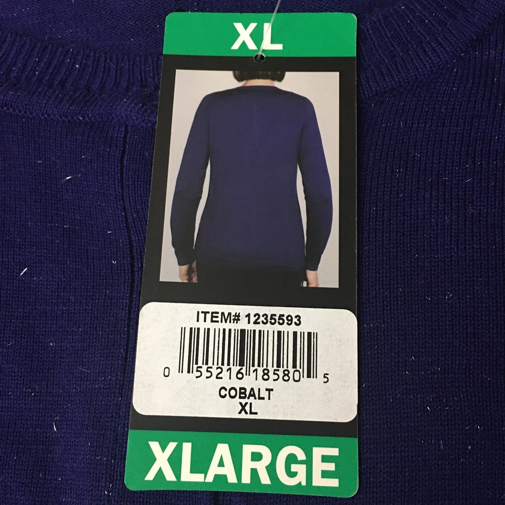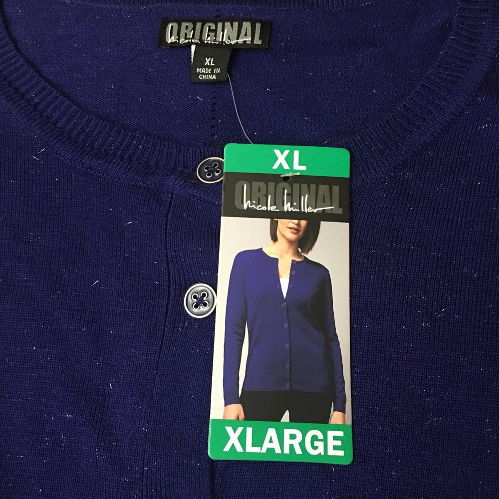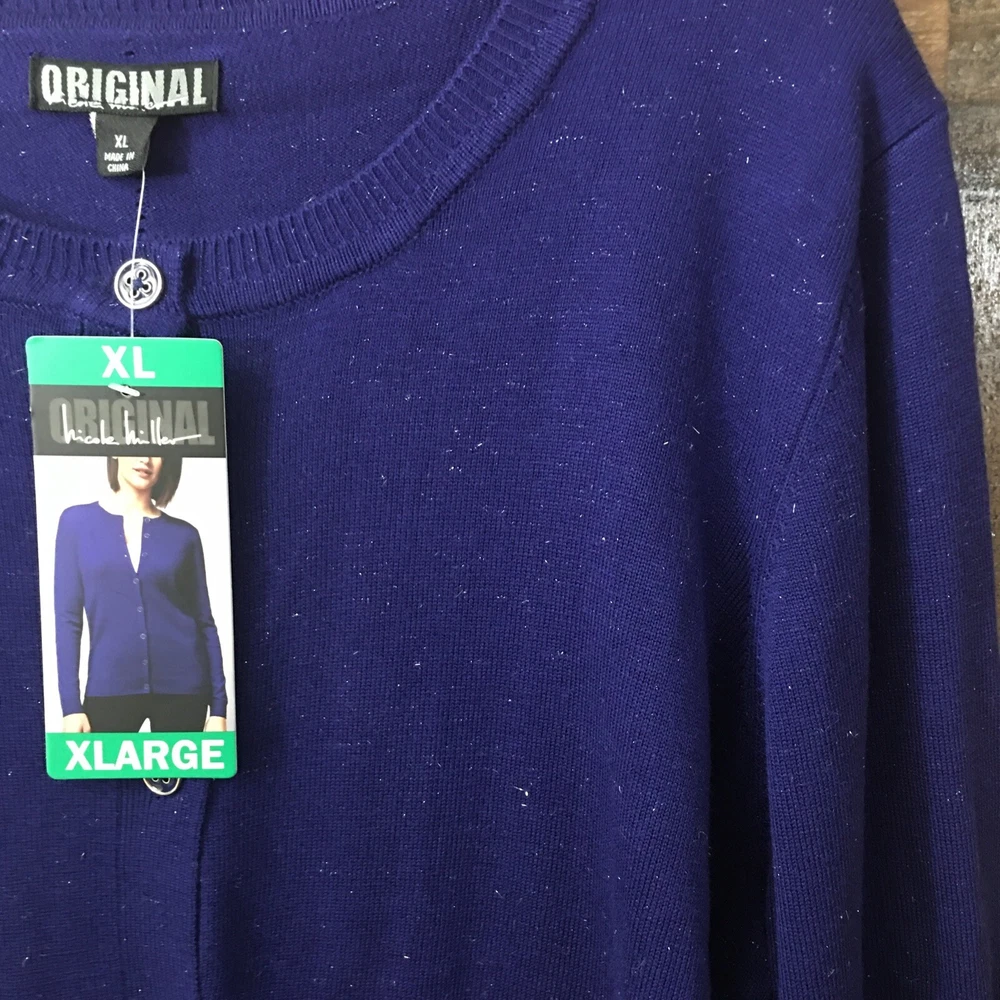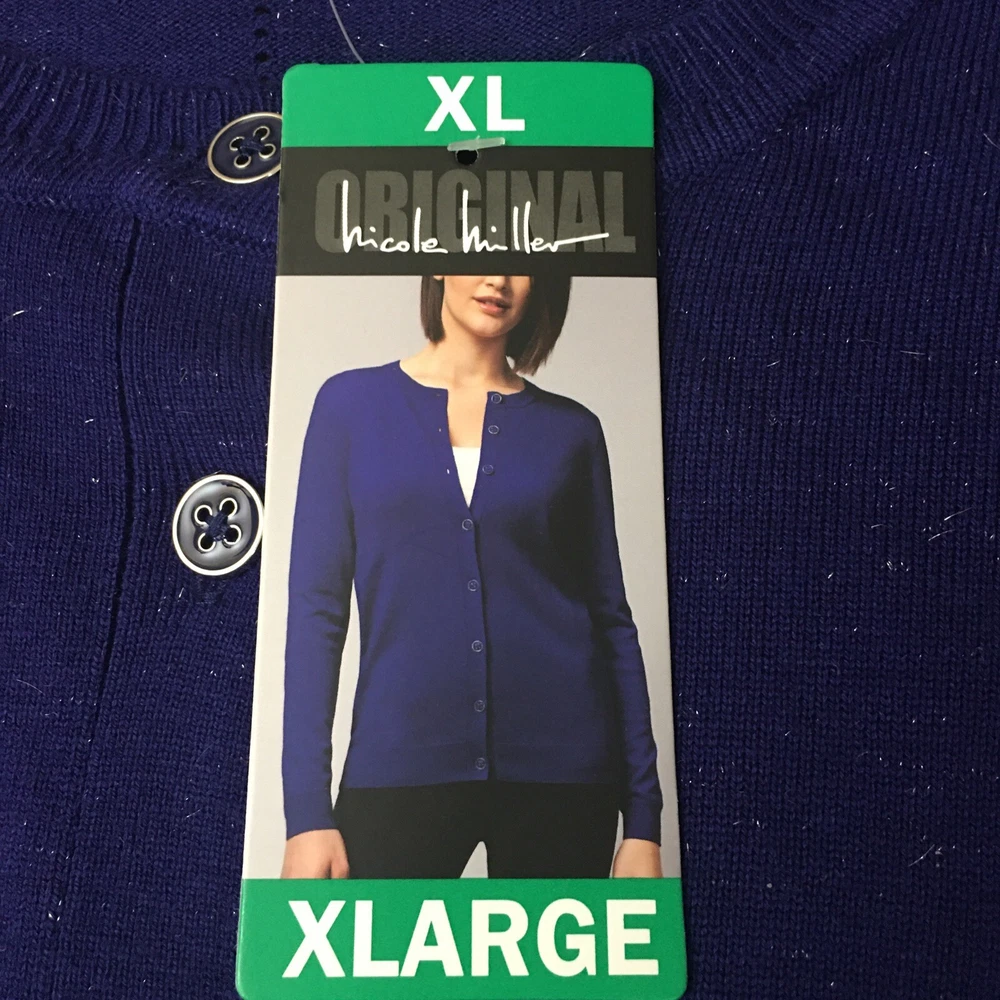 Nicole Miller Cardigan Sweater XL Button Front Sparkly Colbalt Holiday Party