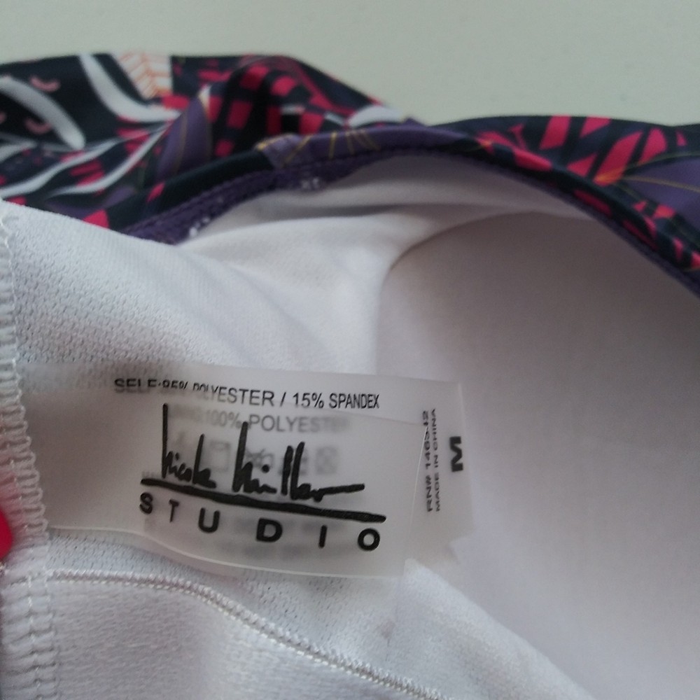 Nicole Miller Women's Swimsuit Racerback Fully Lined Purple floral Size M Racer back style Lines Shelf bra Like new