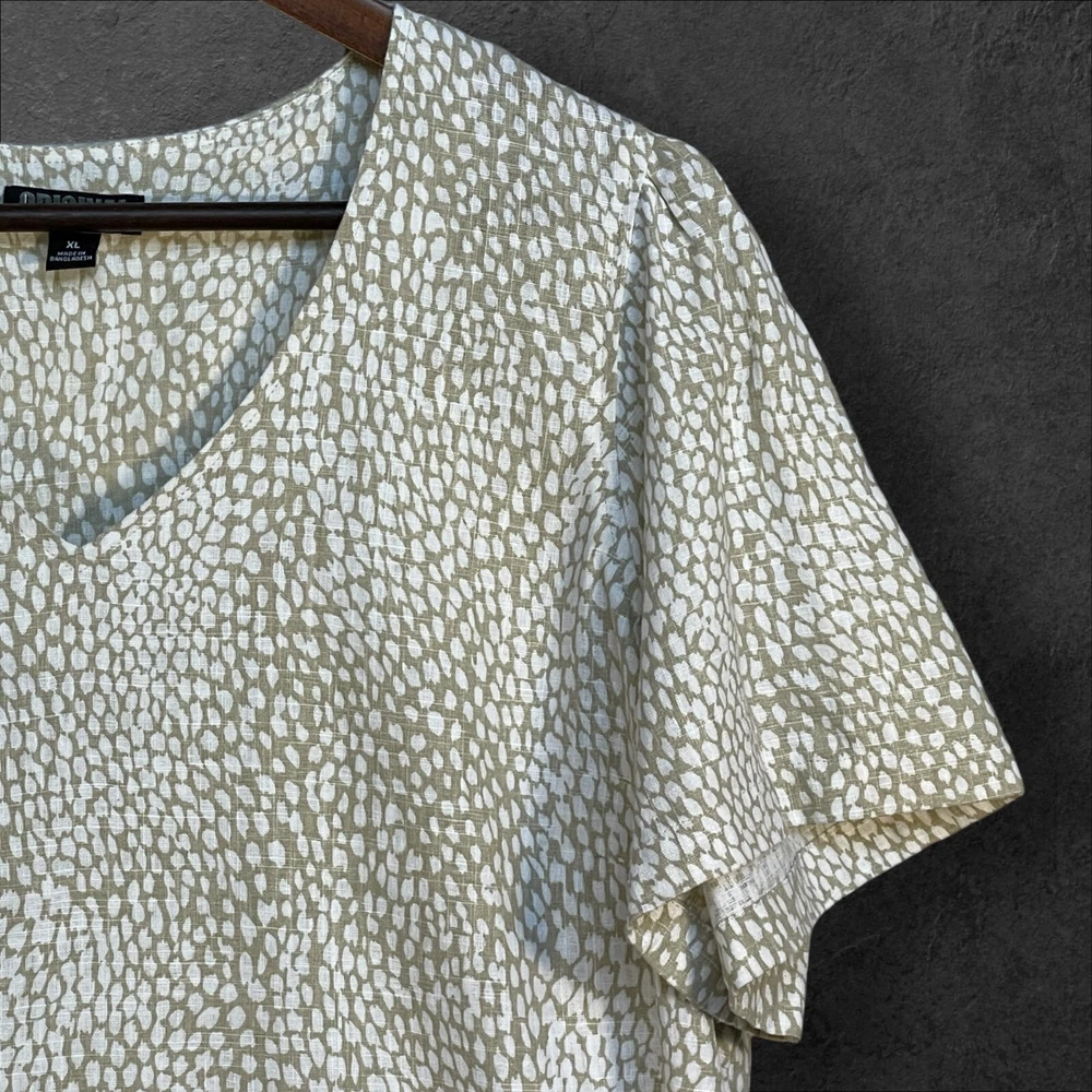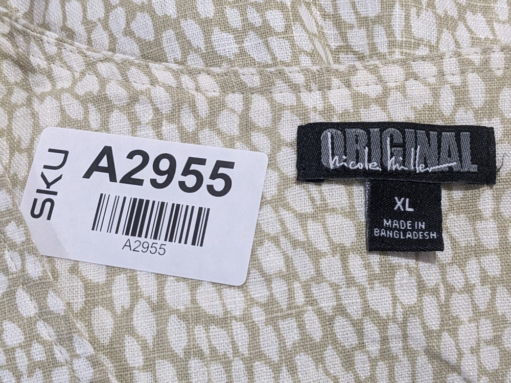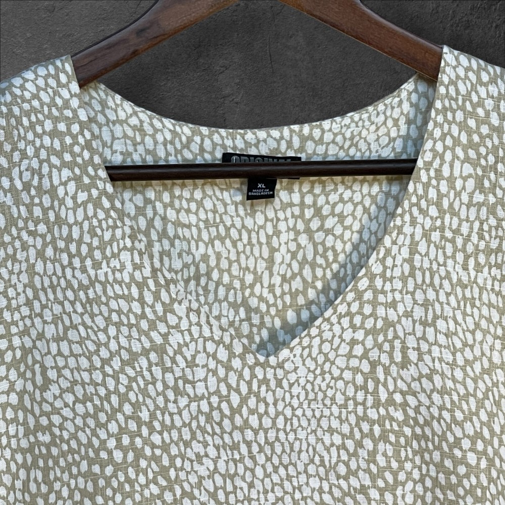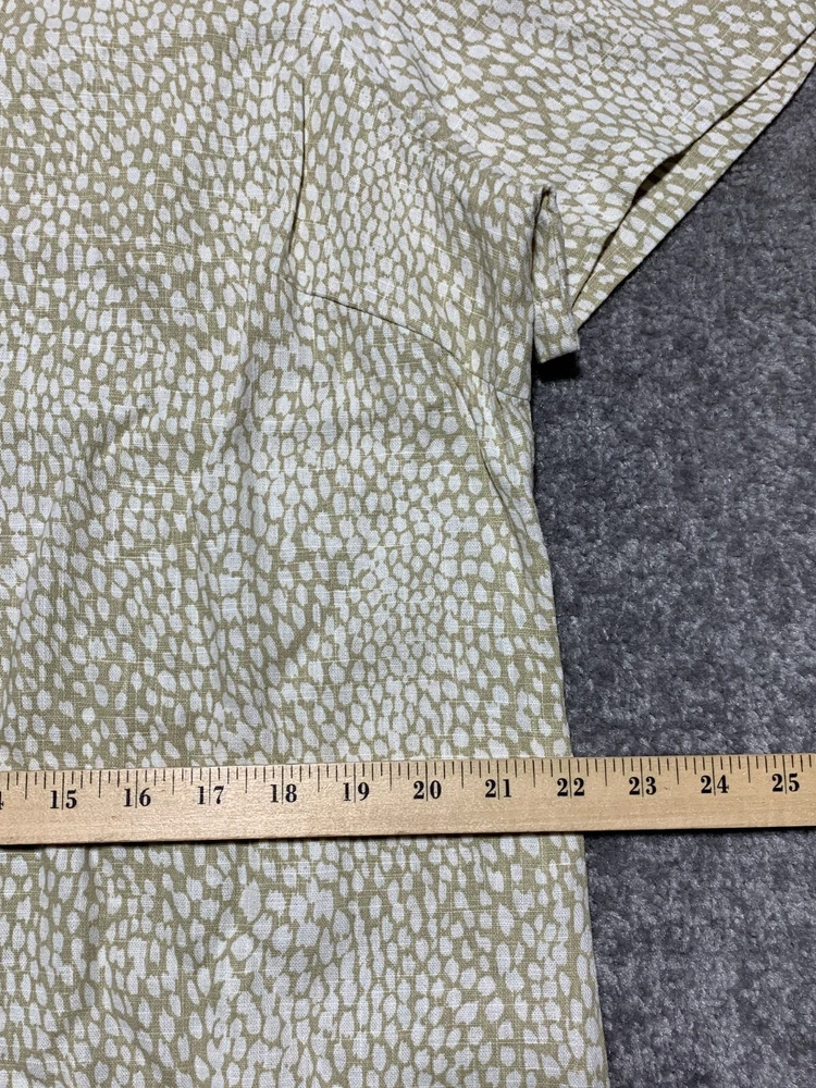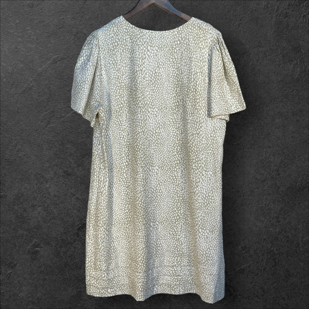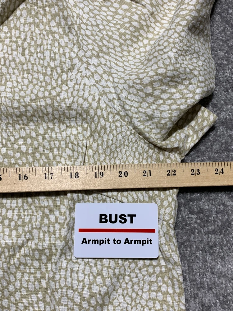 Nicole Miller T-Shirt Dress Women Size XL Green Animal Print Linen Short Sleeve *Good Pre-owned Condition *Please see photos for approximate measurements (in inches), fabric make, washing instructions, and other notable details. *Purchased items are shipped out next business day.