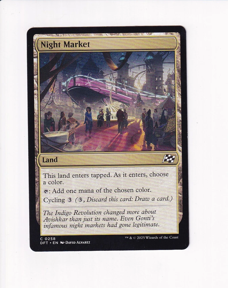 Your purchase includes {4} NIGHT MARKET from Aetherdrift ***PLEASE NOTE*** This is a PRESALE item. Ebay Estimated Time of Arrival will be WRONG. This item will ship as soon as available but no later than February 14. (Aetherdrift release date) Also note: Presale items not able to be canceled. Condition--Pack to Sleeve - Unplayed - Near Mint or Better Language-- English Picture is a stock image SHIPPING -- We ship same or next business day. We do not ship on USPS Holidays, Saturdays, or Sundays We appreciate your support.