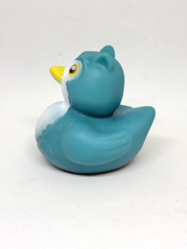 Night Owl Teal Rubber Duck 2” Ducky Bath Pool Jeep Toy. Note: Item has marks/scratches and a pin size dent on the front; shown in photos! Thank you for stopping by!