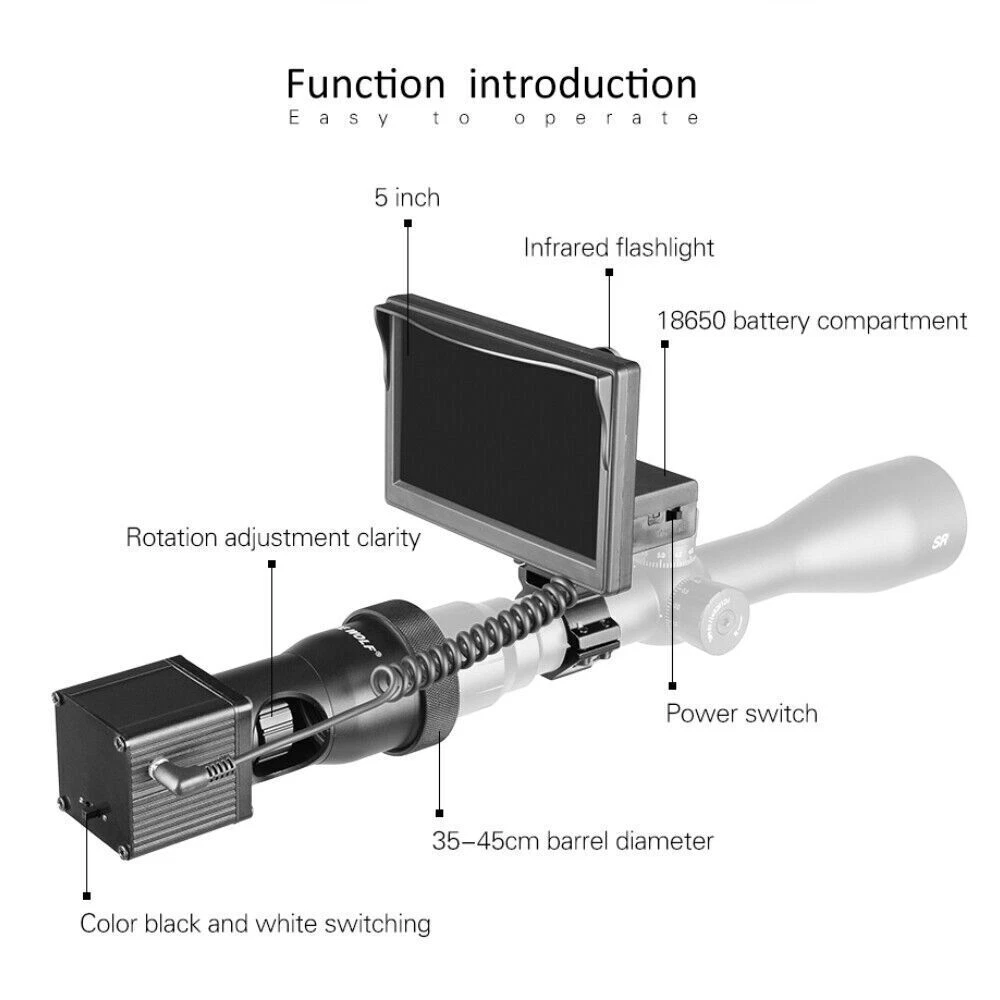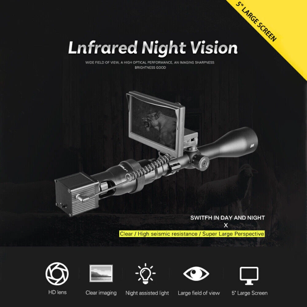 Night Vision Rifle Scope 5 inch PRO Hunting Sight Infrared 850nm IR Camera USA