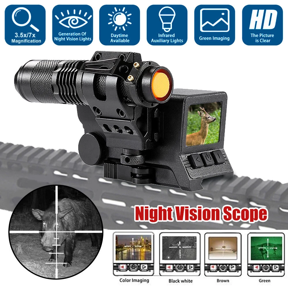 Night Vision Rifle Scope Red Dot Optical Mini Sight 7X Zoom Hunting Telescope IR