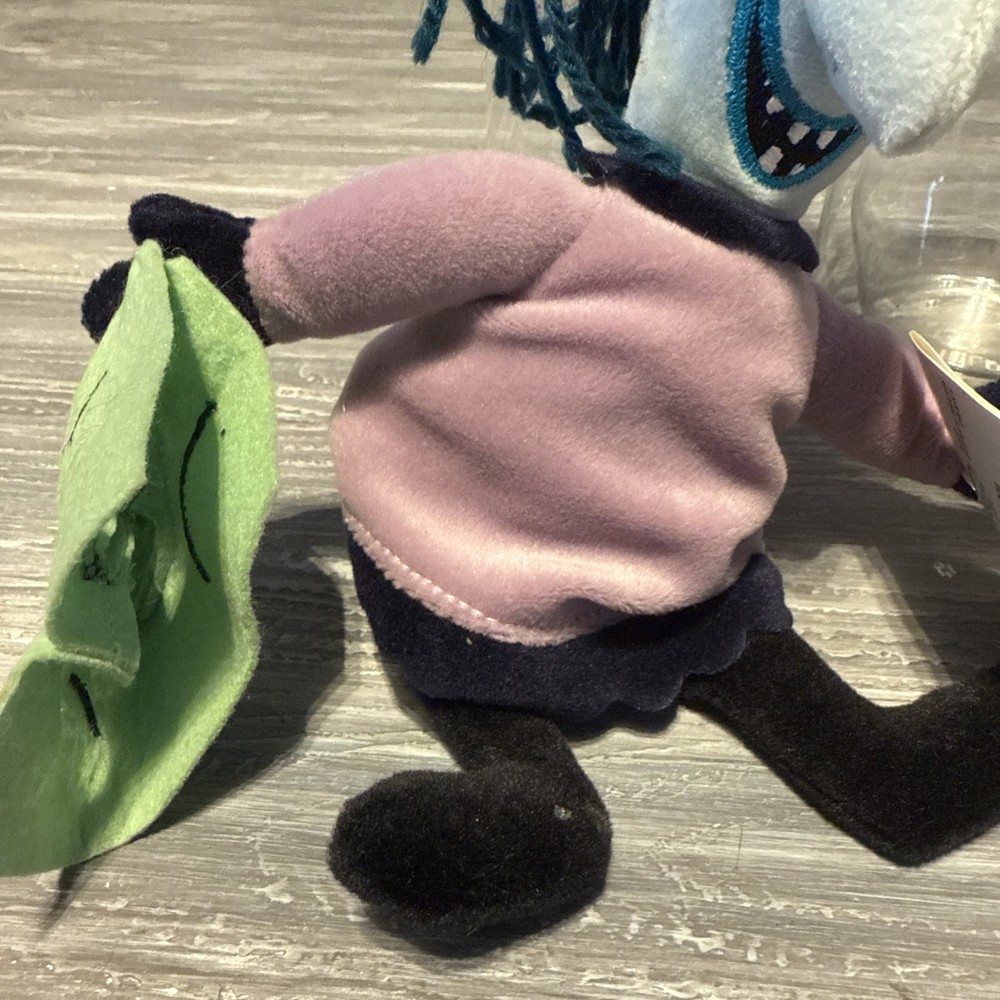 This product is a vintage Disney bean bag plush toy from The Nightmare Before Christmas franchise. It is a rare find, as it is a Disney Store and Theme Park Exclusive item. The plush features a character from the beloved Disney movie, making it a sought-after collectible for fans of the film. Made in China, this officially licensed Disney product is in new with tags condition, making it a valuable addition to any Disney collection.