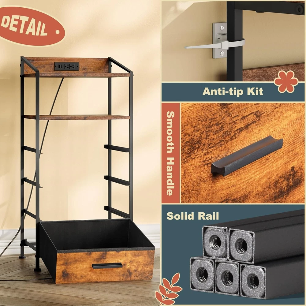 Nightstand 11.4"D x 14.4"W x 32.5"H (4 Drawers), Rustic Brown Product Details Brand: EKNKOZY Product Dimensions: 11.4"D x 14.37"W x 32.5"H Color: Rustic Brown Room Type: Living Room Special Feature: Adjustable Feet MaterialFinish Type: Engineered WoodPolished Number of DrawersStyle: 44 Drawer Multi-scene Application: This dresser storage tower can used in multiple rooms, as a storage drawer table beside the couch; entryway table, console table, side table, display table in the living room. Dresser shelf or storage cabinet in the bedroom or nursery. Power Outlet & LED Lights: This nightstand features built-in LED lighting with 20 static colors, 22 dynamic modes, 10 speed grades and 5 brightness grades to create beautiful ambiance that enhances your room. The dresser is equipped with 2 Standard Plug Outlets & 2 USB Ports Charging Station, plug in your phones and lamps. Durable Material: Non-woven chest of drawer is breathable and can be wiped directly with a wet cloth. Solid MDF board with water-resistant design also easy to clean. Easy-to-pull metallic handle can smoothly open and close the drawer. Ample Storage: With 4 foldable fabric dresser drawers, each drawer can hold up to 10 lbs. Light weight and top handle makes it easy to move. Store all your articles for daily use. The double display shelf is perfect for keeping everyday essentials like lights, books, decorations, etc. within reach. Sturdy Structure: The tall vertical dresser anti-tipping accessories can protect you from any hurt. High-quality sturdy steel frame can provide stable support. Adjustable feet with plastic cover can protect your floor and are also suitable for uneven ground. Easy to Assemble: The night stand measures 11.4"D x14.4"W x 32.5"H. Clear manual, all screws, and tools are offered in the package. You can set up the whole drawer dresser easily by following the manual, and the uploaded assembly video is also for guidance. For any further support, please contact us.