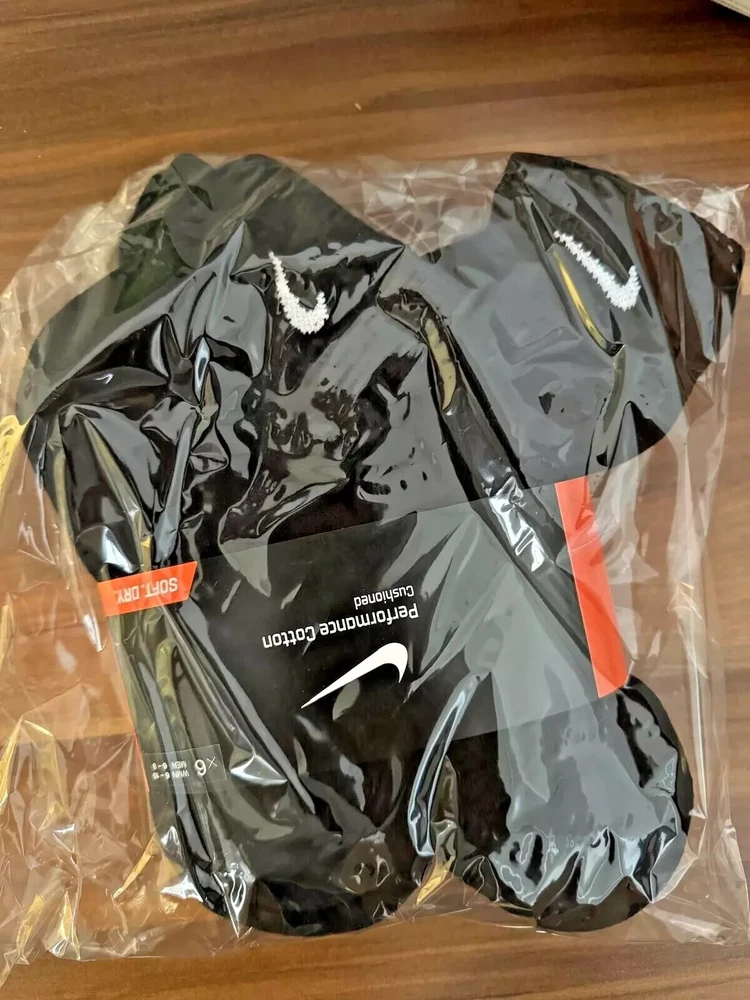 Handmade: No Number in Pack: 6 Pairs Style: Crew Socks Type: Socks Size Type: Regular Brand: Nike Material: Cotton Size: M Features: Cushioned Personalize: No Department: Men Pattern: Solid Color: Black Season: Fall, Spring, Summer