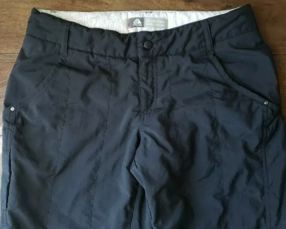 You are buying Nike ACG All Condition Gear Womens Black Insulated Ski Snow Pants Size 8 COLOR: Black SIZE: US Womens 8 MATERIAL: Body/Lining/Fill - 100% Polyester CONDITION: Pre-owned good condition. Please see ALL photos for overall condition. Length 41" Waist 31" Inseam 31.5" Rise 8.5” FLAWS: Items contains some minor wear along pant leg hem (Pic #5). SHIPPING TIME: Will ship all items within 1 business day of your payment clearing. (excluding holidays and weekends) RETURNS: We accept any item back within 30 days of the original purchase date for a full refund. All returns must come back in the same condition they were shipped out and arrived in. New items that have been clearly used are only eligible for partial refund. FEEDBACK: We aim to earn positive 5 star feedback for every item , if your happy with your purchase please take a minute to leave 5 star feedback. If you have issues with your purchase please contact us directly using Ebay's message service to resolve the issue so that we can earn your positive 5 star feedback.