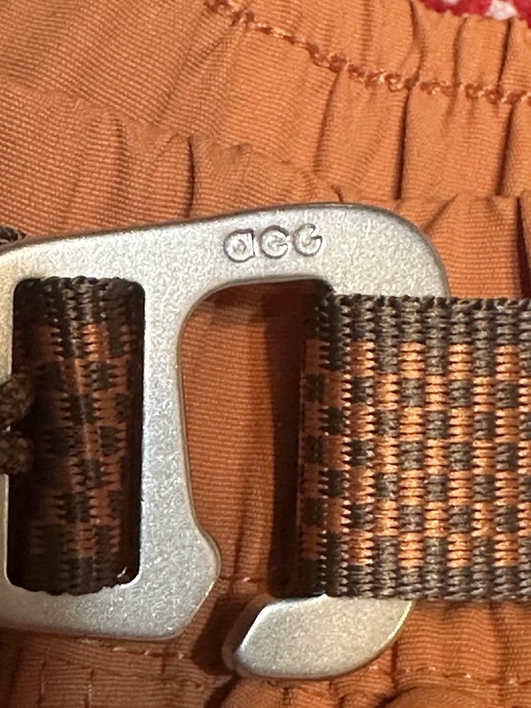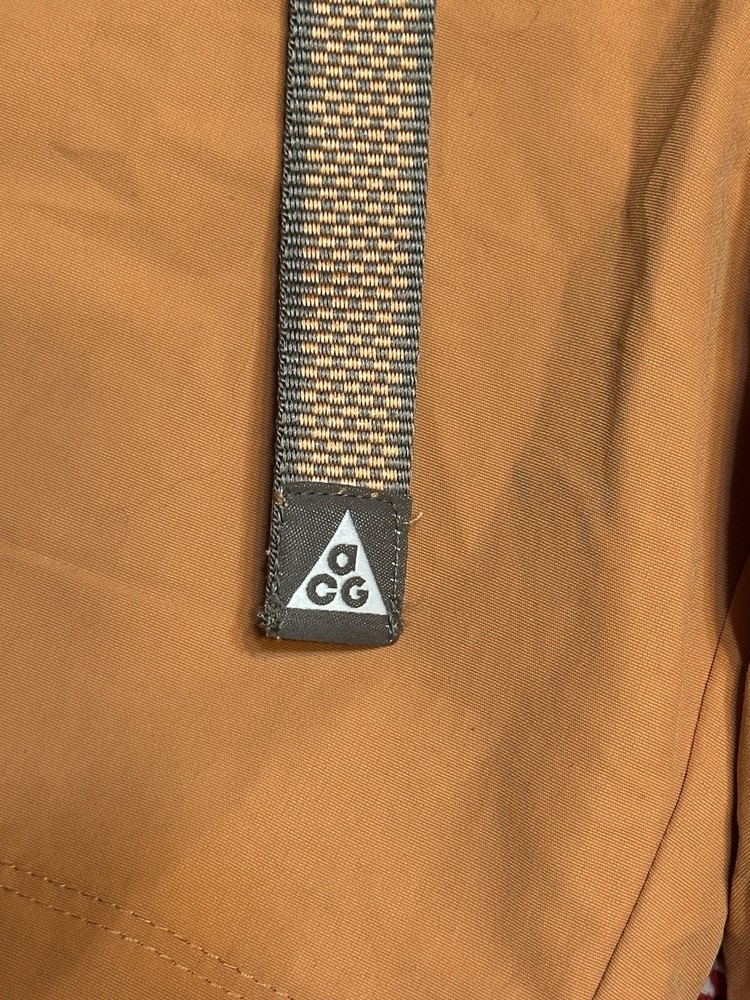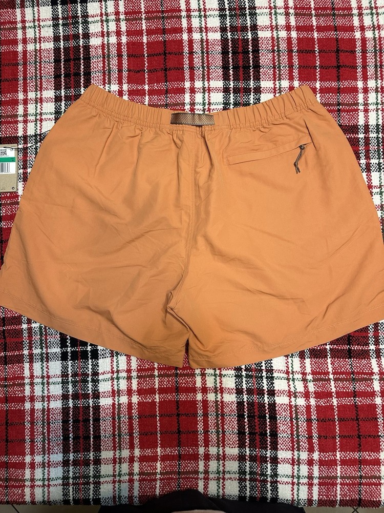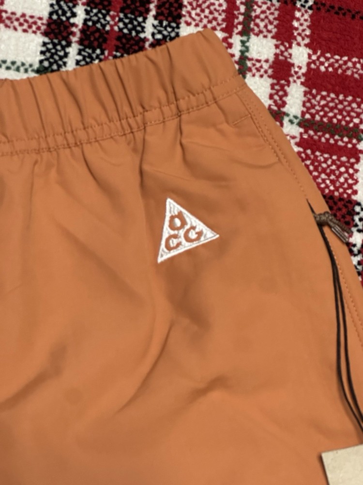 The Nike ACG Trail Shorts in Rust Oxide are versatile activewear shorts suitable for hiking and running. Made of 100% nylon, these shorts feature a solid color with a logo and sports theme. They have an elastic waist with a buckle closure and pockets for convenience. The standard fit and machine washable material make them comfortable for various outdoor activities such as walking, cross training, and athleisure. Ideal for men in size XL, these shorts are a reliable choice for active occasions.