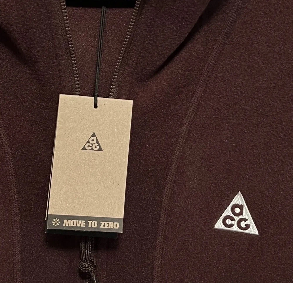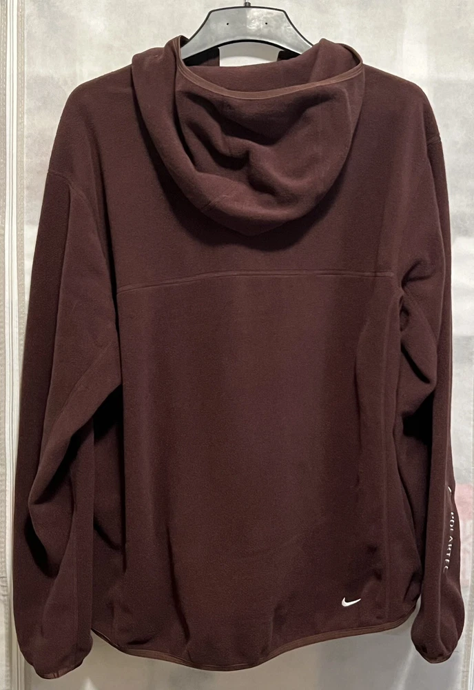 Elevate your outdoor style with the Nike ACG Wolf Tree Polartec Fleece Full Zip Hoodie. Designed for those who seek both comfort and durability, this hoodie features a soft and warm fleece fabric that's perfect for chilly adventures. Its full zip closure allows for easy layering, while the long sleeves provide additional warmth and protection against the elements. The hoodie comes in a versatile Ale Brown color that easily complements your outdoor gear, with a size Medium that fits true to size for regular builds. It's part of the esteemed Nike ACG product line, known for its quality and outdoor-inspired themes, including the moon and ACG branding. Whether you're on a hike or just chilling in the city, this hoodie brings a touch of wilderness to your wardrobe.