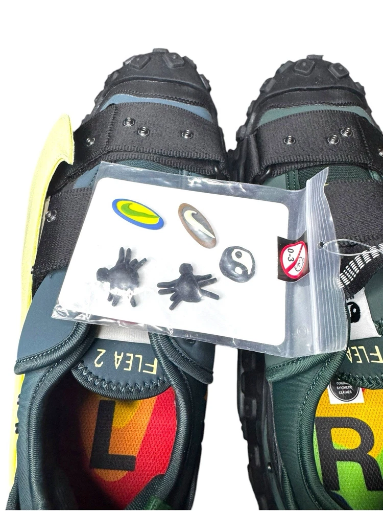 Elevate your sneaker game with these Nike Air Flea 2 x Cactus Plant Flea Market Low shoes. Designed with a stylish low top silhouette, these sneakers feature a unique faded spruce color that will make any outfit pop. The shoes are made with high-quality materials and have a comfortable athletic fit, making them perfect for any casual occasion. These sneakers are a must-have for any sneakerhead and come with a Nike style code of DV7164-300. The shoes are brand new and were released in 2023, ensuring that you will be rocking the latest trend. Don't miss out on adding these to your collection and stepping out in style.