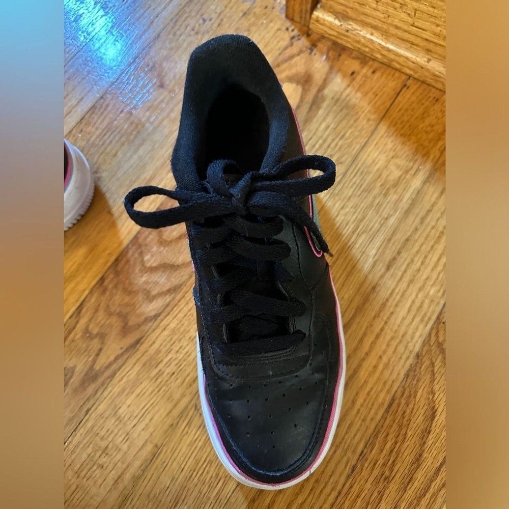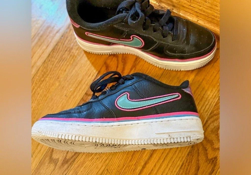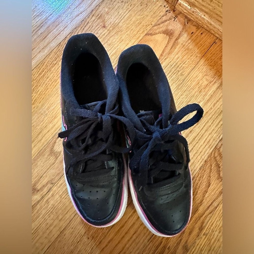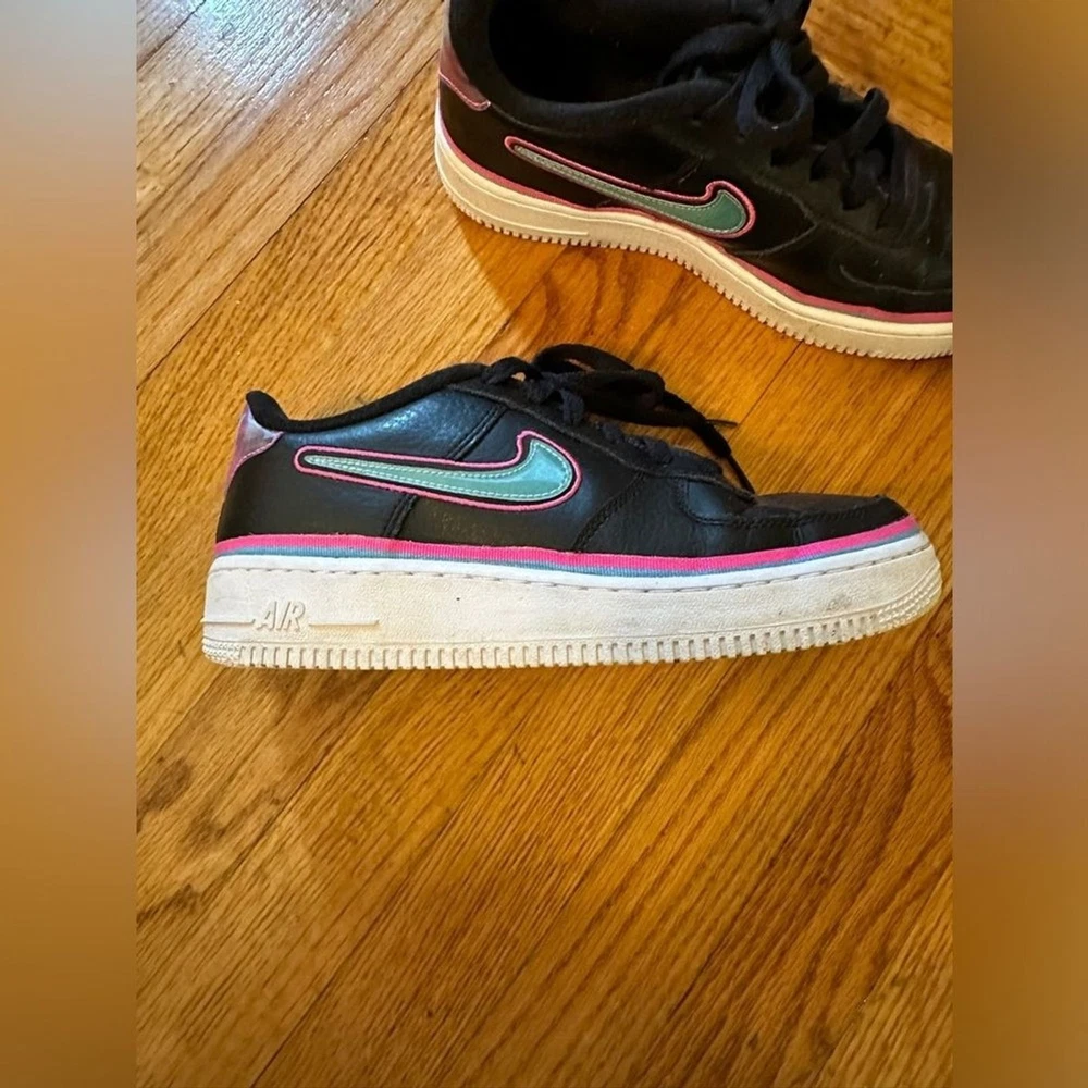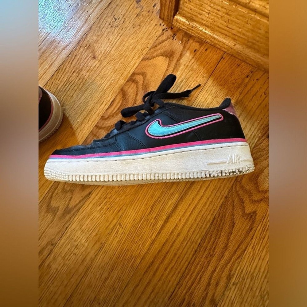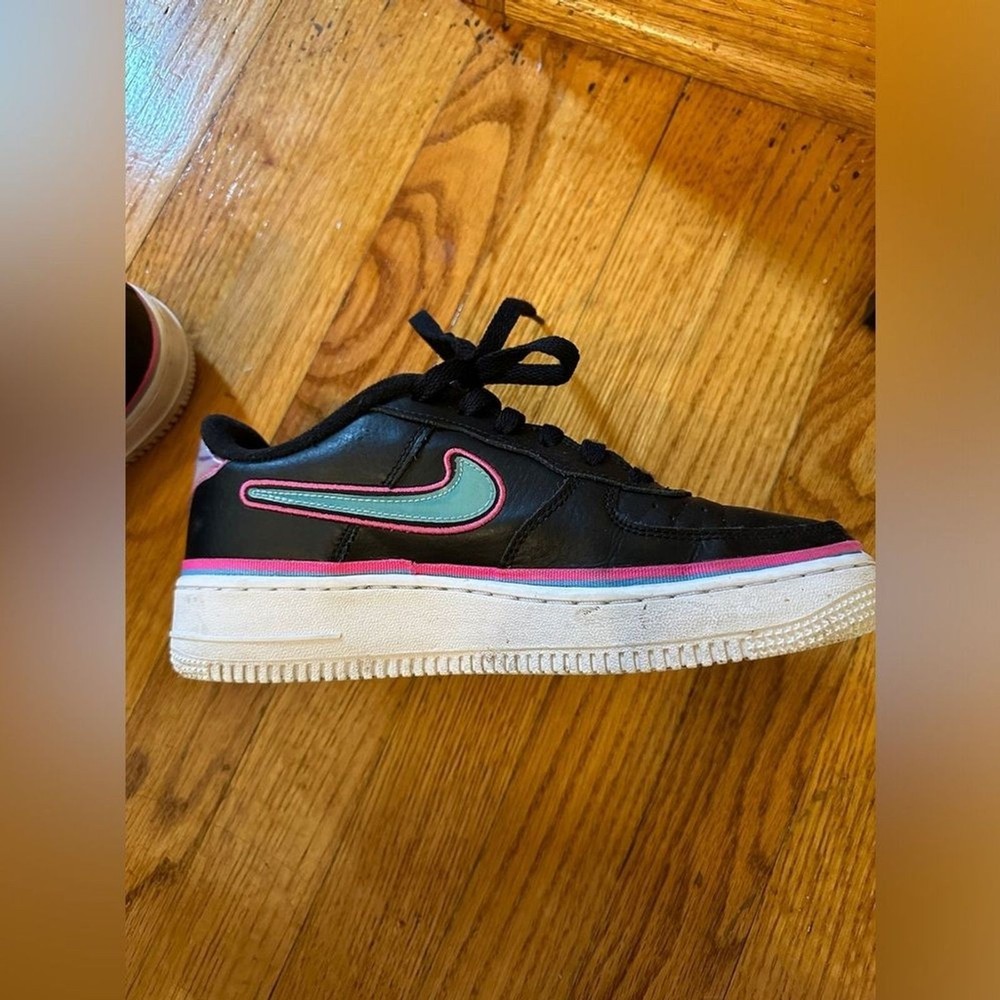 Nike Air Force 1 Low LV8 Miami Vice Black with blue, pink accents Size 6.5 Youth which is about 8 in womens or 6.5 Mens - Size Chart included in photos VGUC - could use a cleaning, some piling on interior fabric