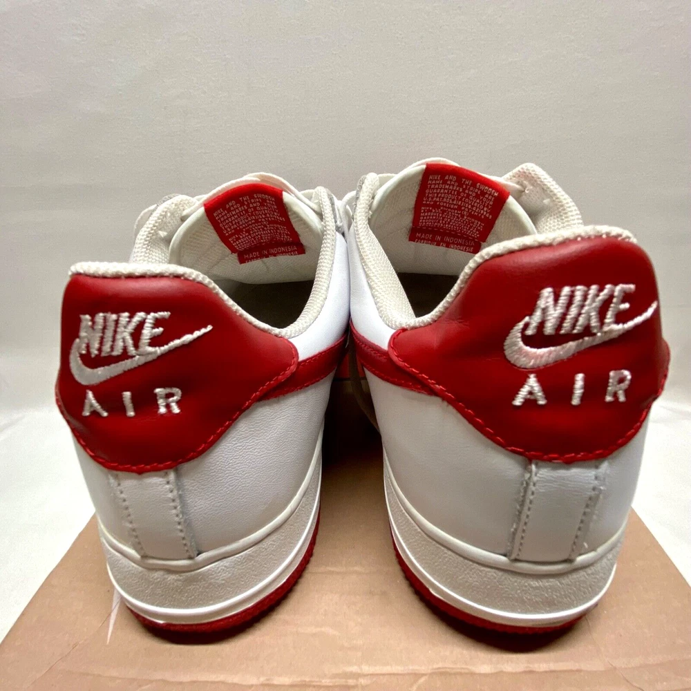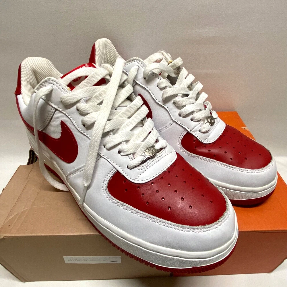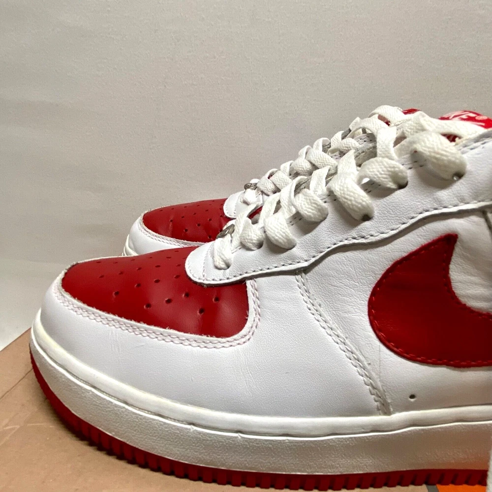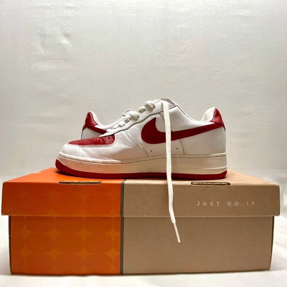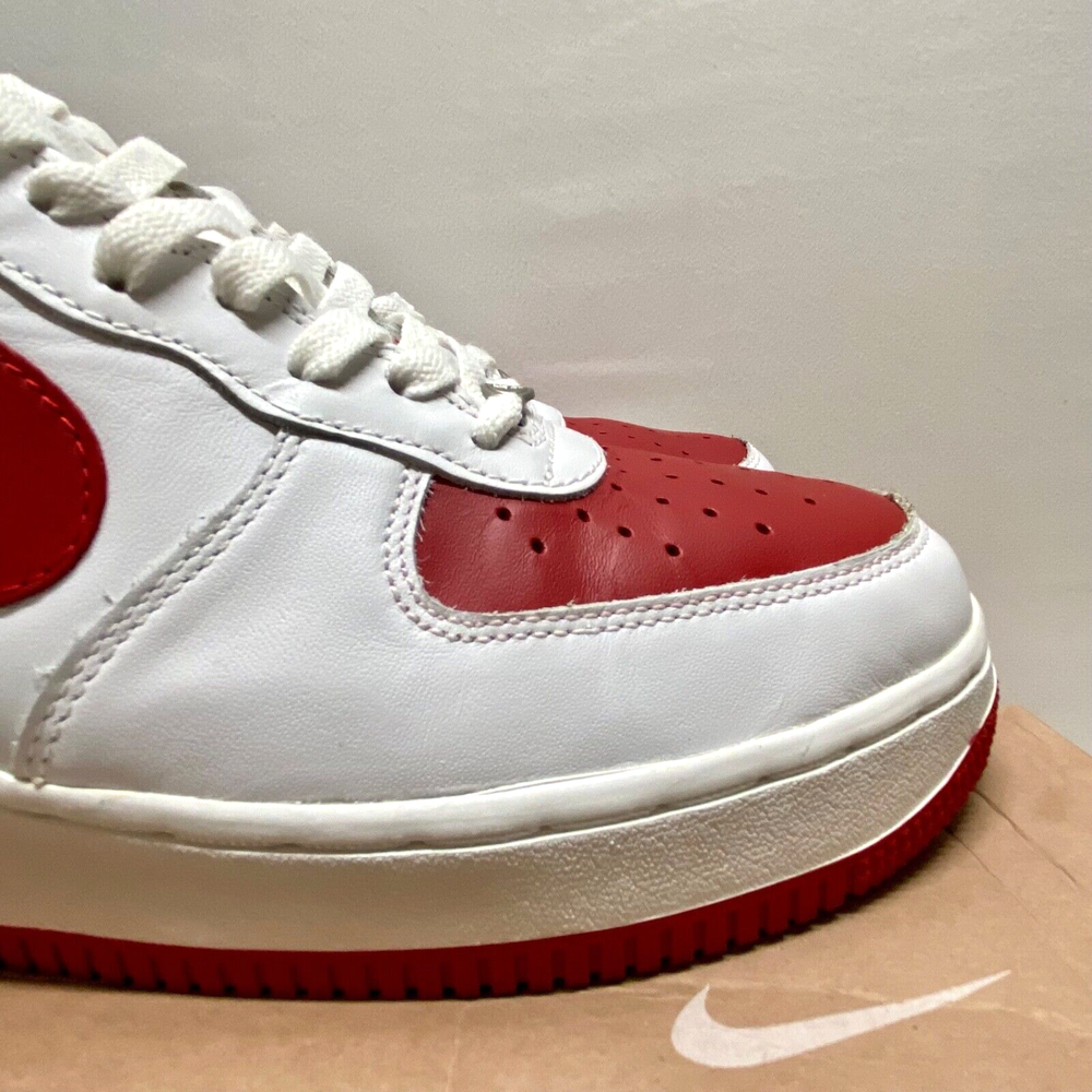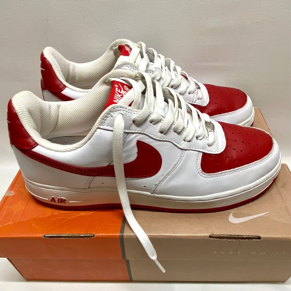 This Nike Air Force 1 sneaker is a rare vintage find from 2003 in a ‘82 white and red toe colorway. It features a lace-up closure, cushioned and breathable design, suitable for casual, work, or activewear. The shoe is a men’s size 10 US (9 UK) with a low-top shaft style and a rubber outsole. Perfect for walking, school, or basketball, these rare limited Y2K edition shoes are a colorful addition to any sports-themed collection. Excellent pre-owned Vintage Condition as shown up close in the listing photos above, with the original box. Came from personal collection with very minimal wear. (There is a small blemish on the right toe, a glue mark from factory on the inside of the left shoe, and a couple black marks on the bottom underneath of the red rubber soles. Otherwise, these Rare Limited Edition 2003 Collectible AF1 shoes are in exceptional condition (Accepting Reasonable Offers) Securely packed and same Day Shipping Thank you for shopping TKO Specialties