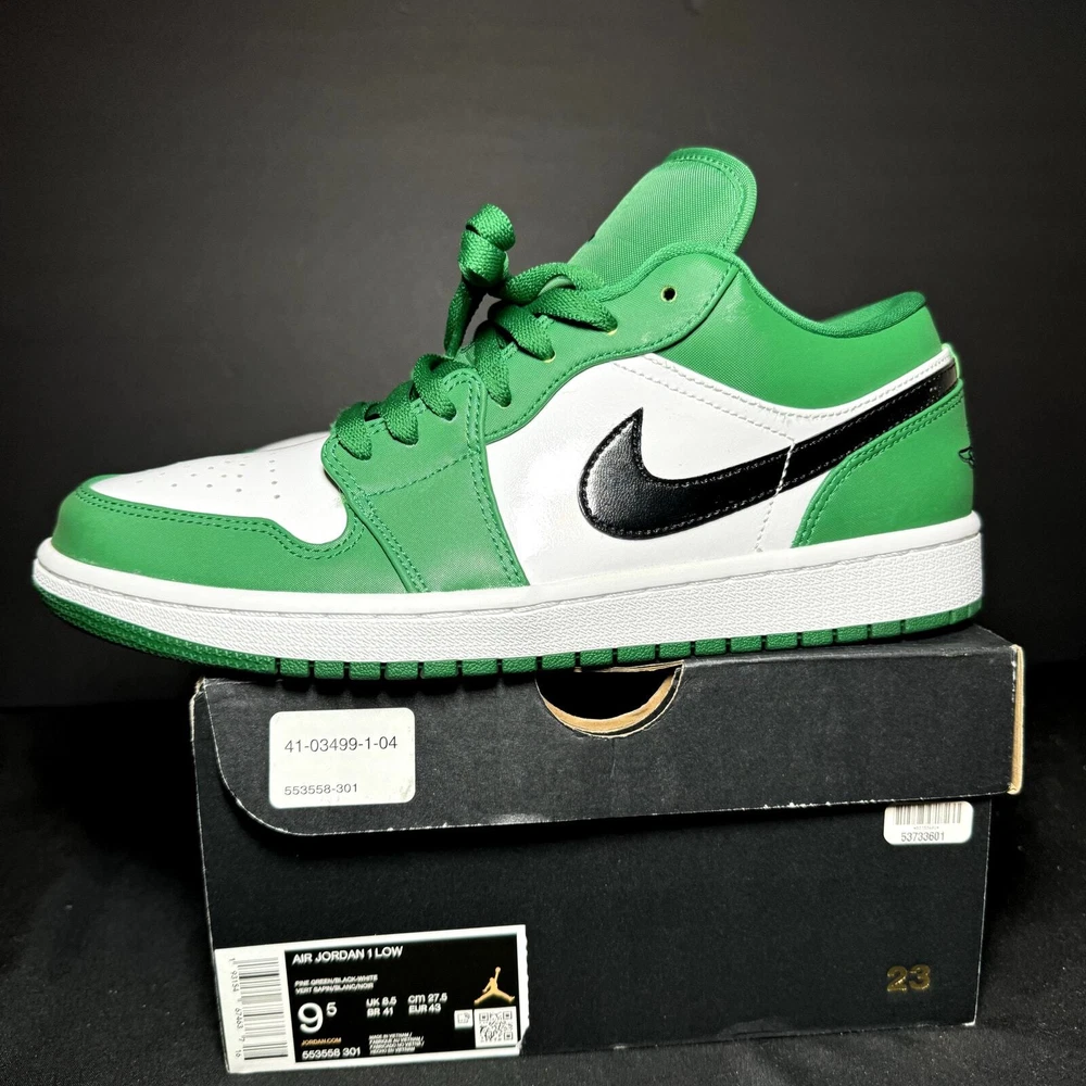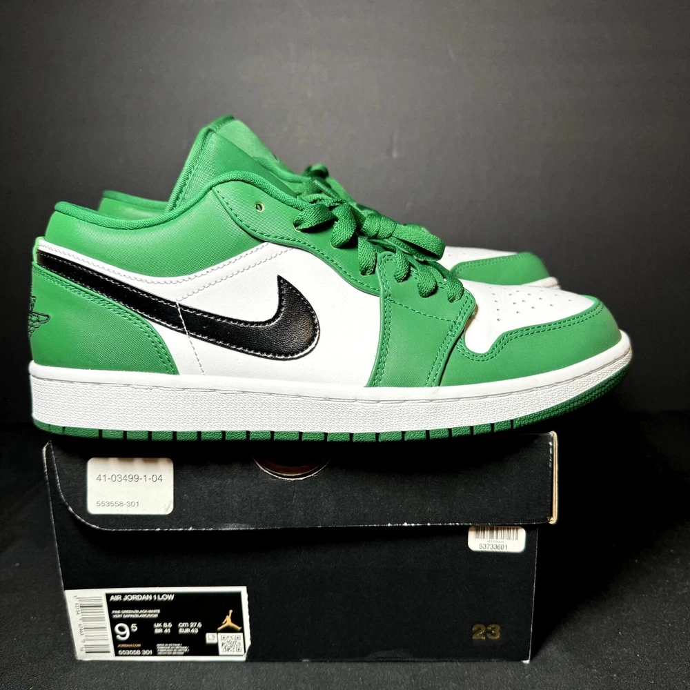 Occasion: Activewear Country/Region of Manufacture: China Performance/Activity: Lifestyle Silhouette: Jordan 1 Low Pine Green 2020 Upper Material: Leather US Shoe Size: 9.5 Closure: Lace Up Lining Material: Fabric Season: Fall, Spring, Summer Theme: Modern Signed: No Product Line: Air Jordan Cleat Type: Rubber Brand: Nike Year Manufactured: 2019 Features: Adjustable, Comfort UPC: 00193154674637 Seller Notes: “100% Authentic Check pictures for condition Message me with any questions” Department: Men UK Shoe Size: 8.5 Style: Sneaker Character: Michael, Jordan Shoe Shaft Style: Low Top Type: Athletic Release Year: 2020 Outsole Material: Leather Color: Green Insole Material: Fabric Pattern: Solid Vintage: No gtin13: 00193154674637 Customized: No Shoe Width: Standard Style Code: 553558 301 Model: Nike Air Jordan 1 EU Shoe Size: 43