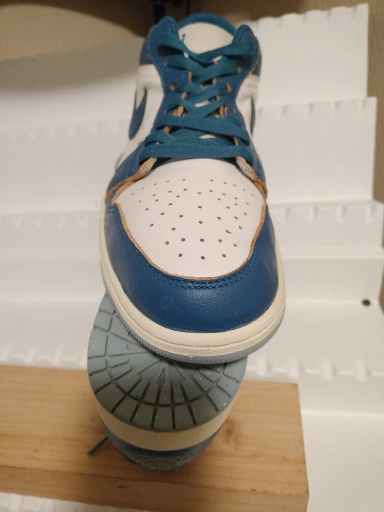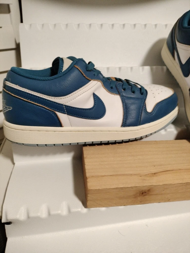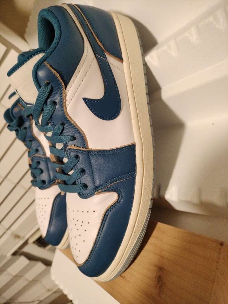 The Nike Air Jordan 1 Low SE Shoes in White Industrial Blue are a stylish and versatile sneaker designed for both activewear and casual occasions. With its lace-up closure and breathable leather upper, these shoes offer comfort and performance. The rubber outsole provides traction, while the cushioned foam insole ensures a comfortable fit. Perfect for basketball, running, cross training, and everyday wear, these sneakers also feature a colorful and vibrant design that is sure to make a statement. Ideal for any season, these Nike Air Jordan 1 Low SE shoes are a must-have addition to any man's wardrobe.