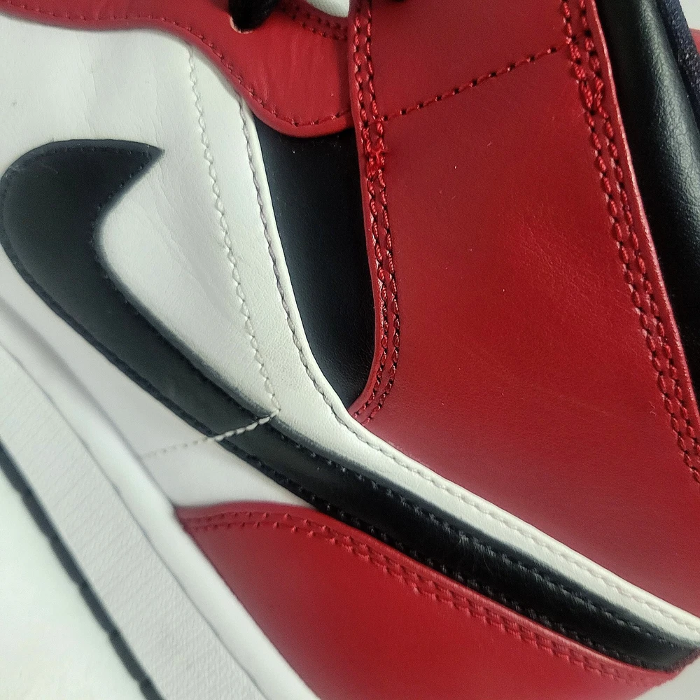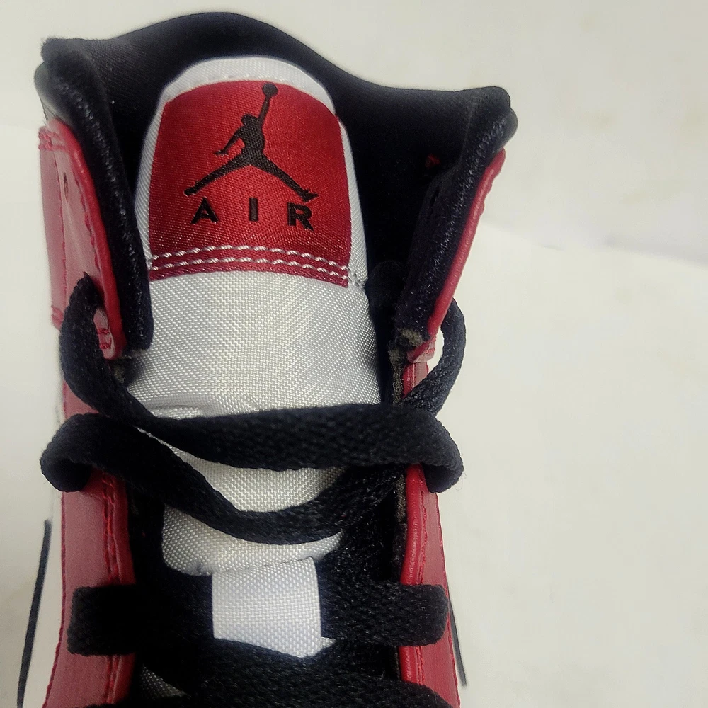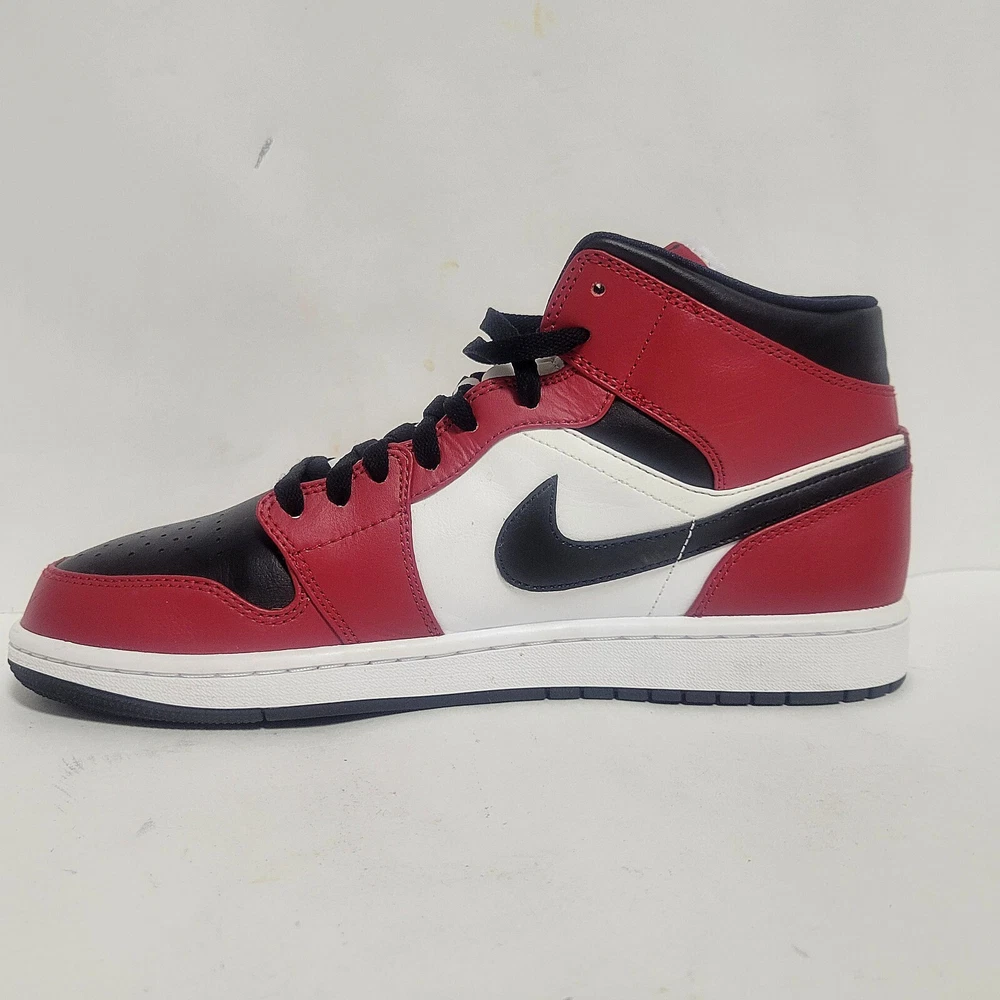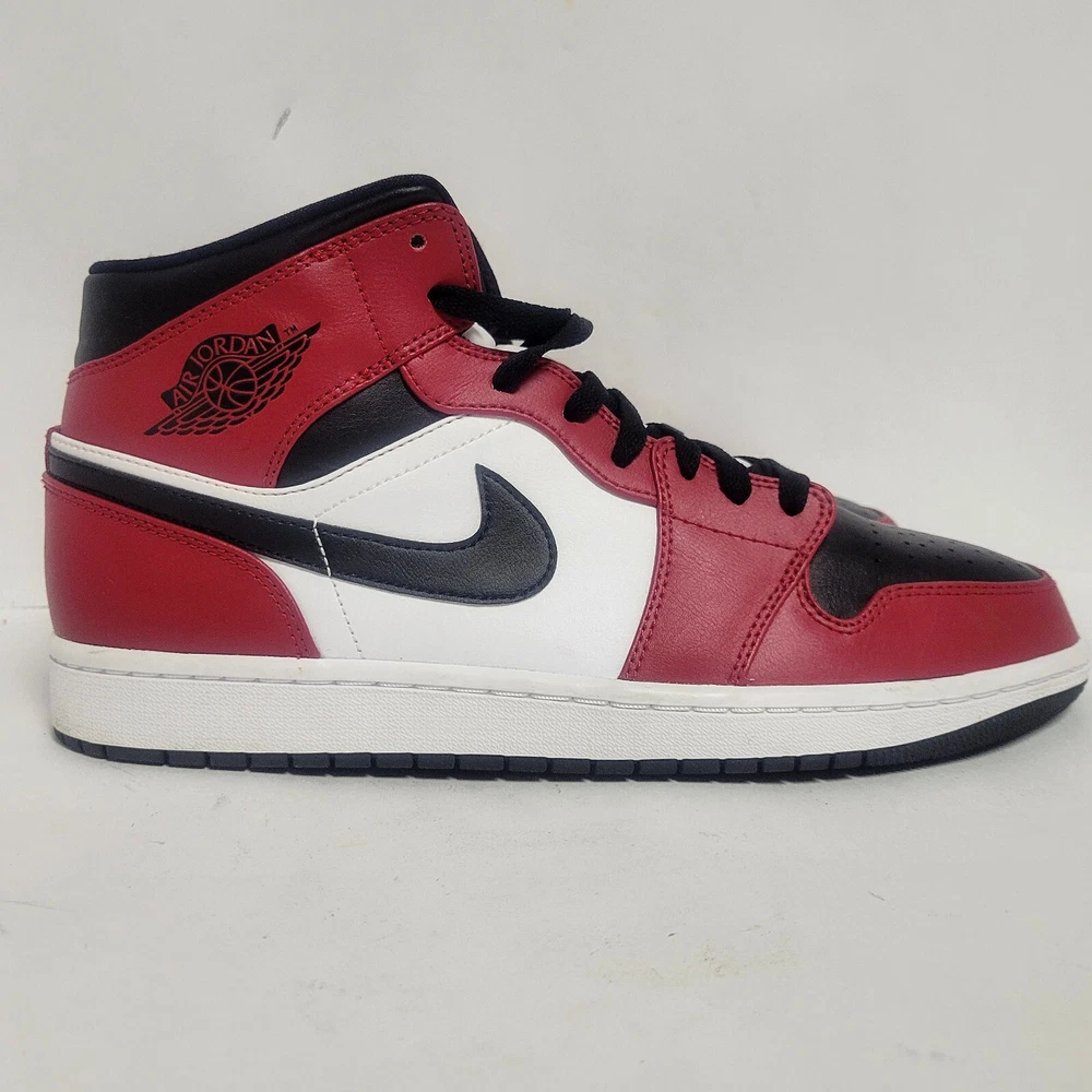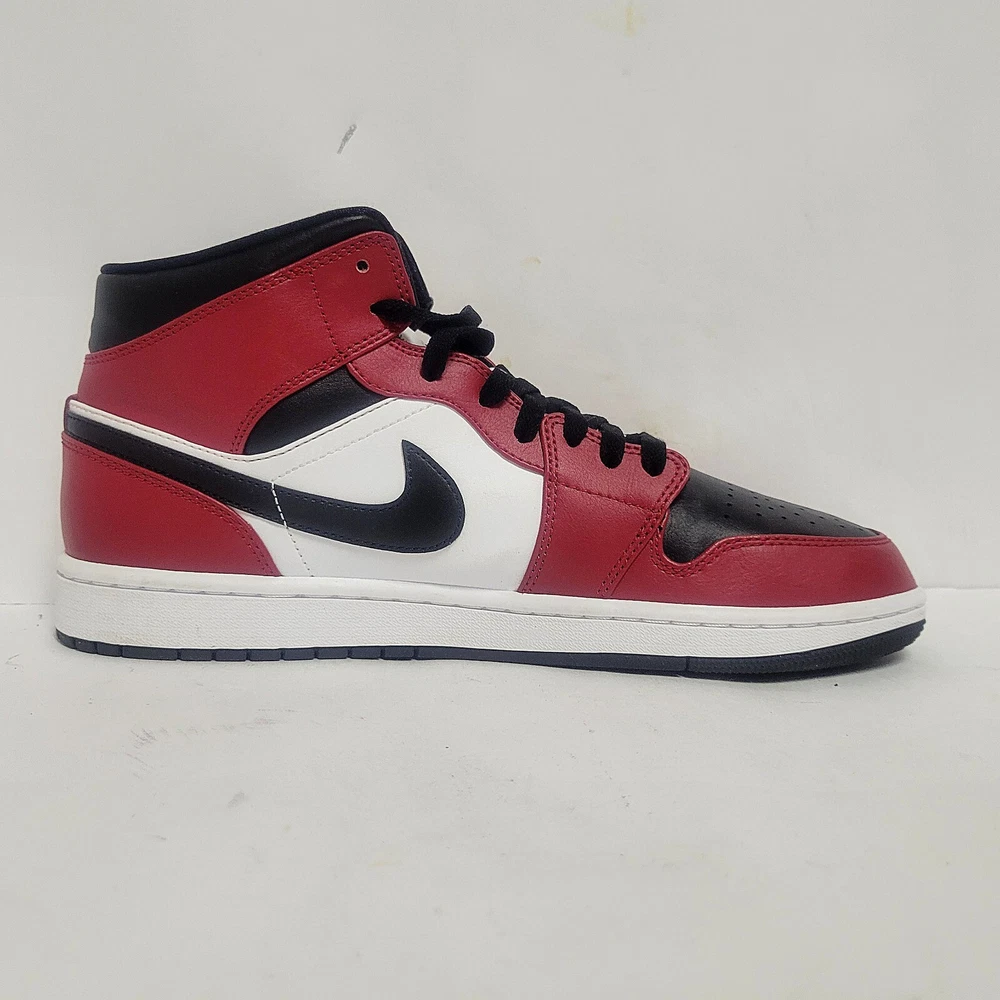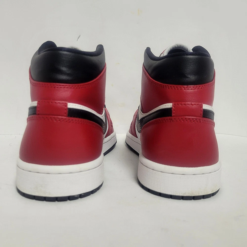 Elevate your sneaker game with these Nike Air Jordan 1 Mid Chicago Black Toe 2020 shoes. They feature a striking colorblock pattern of red, white, and black, paying homage to the brand's retro 80s theme. The mid-top silhouette and lace-up closure provide a comfortable fit for various activities including casual wear, workwear, and even basketball. Crafted with a rubber outsole and fabric lining material, these sneakers are made to last throughout the seasons. The Air Jordan 1 is a classic model that has been revamped for modern times with performance features like a standard shoe width and rubber insole material. Add a touch of colorful flair to your shoe collection with this very good pair of sneakers. Condition: Pre-owned- Excellent contortion. No scratches or scuffs. Bottoms are like new. No wear at all. All the stars are in very good condition on the toes. We have lots of pics posted of the exact shoes you're purchasing. Please check them out ah let us know if you have any questions.