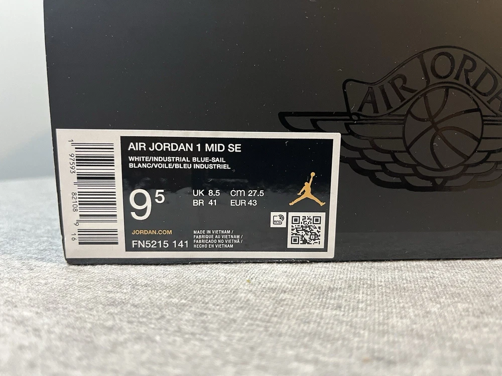 Nike Air Jordan 1 Mid SE White Industrial Blue White Men's Size 9.5 FN5215-141 New with half the box. We always carefully package and ship right away. Reach out with any questions! Men 9.5 The pair in our photos is the exact pair you are purchasing. Make sure to follow us. We post shoes often and offer bundle pricing.