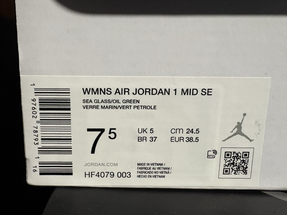 Nike Air Jordan 1 Mid SE Women's 7.5 Seaglass/Olive Green