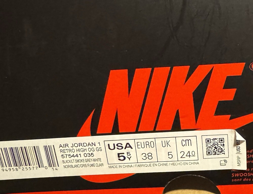 These Nike Air Jordan 1 Retro High Shadows are in flawless condition—barely worn and well-maintained. The GS size 5.5 fits perfectly, and the classic Shadow colorway goes with everything. Super clean, just like the pics show! A must-have for any sneakerhead.