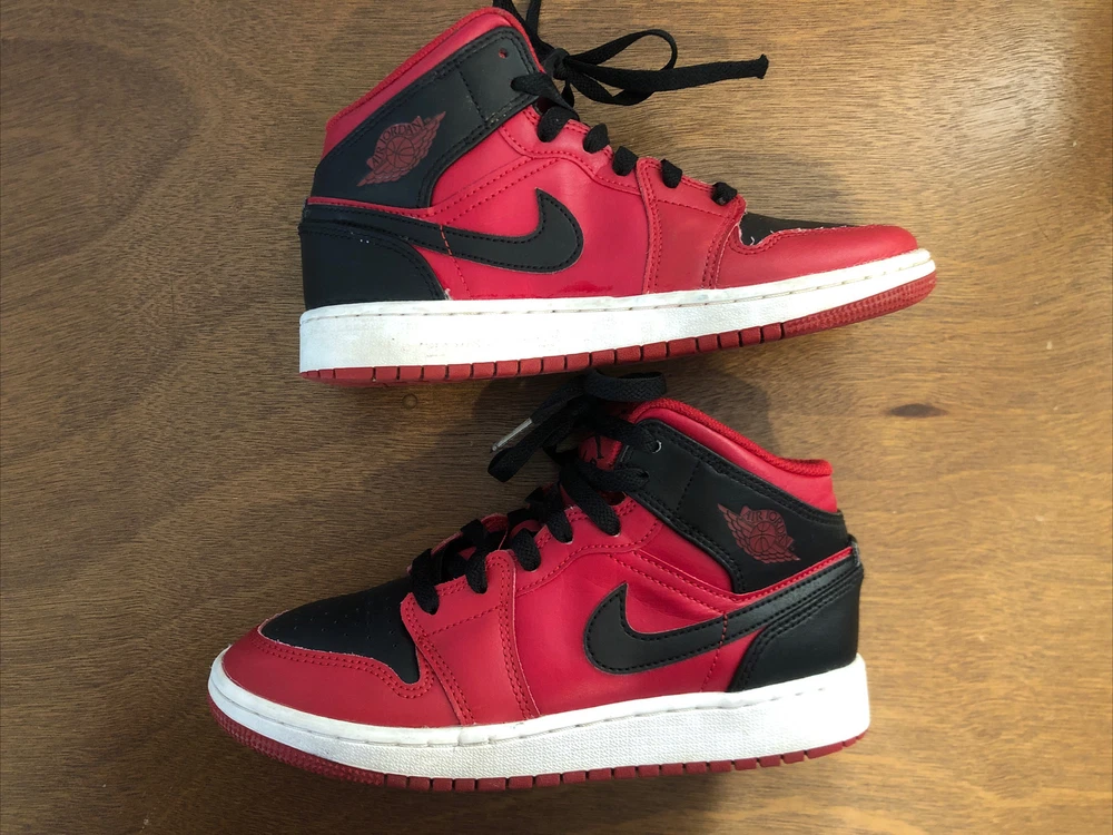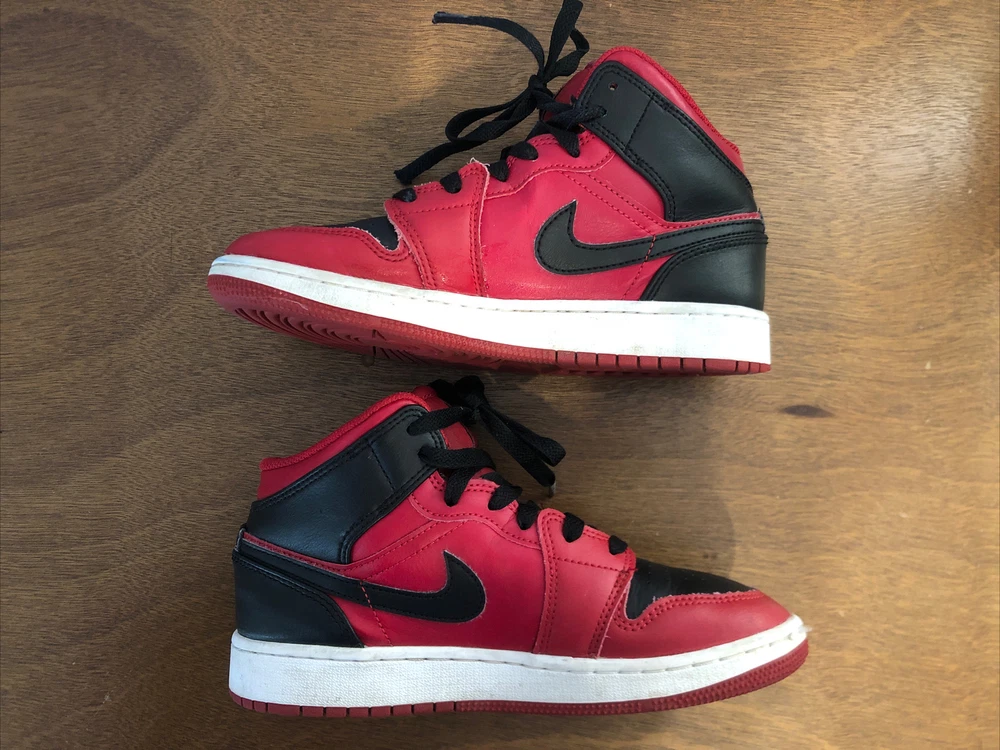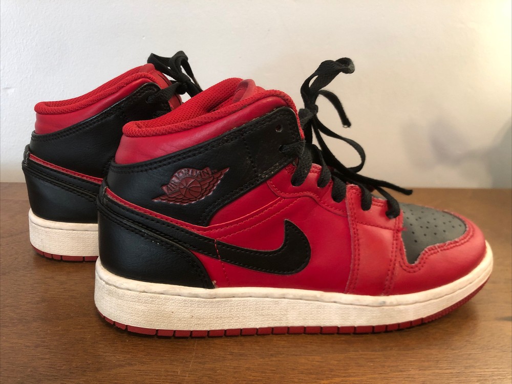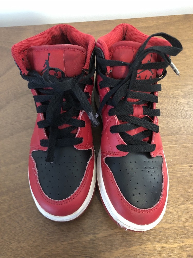 Nike Air Jordan 1 Reverse Bred Red Black 4Y Kids Basketball Sneakers