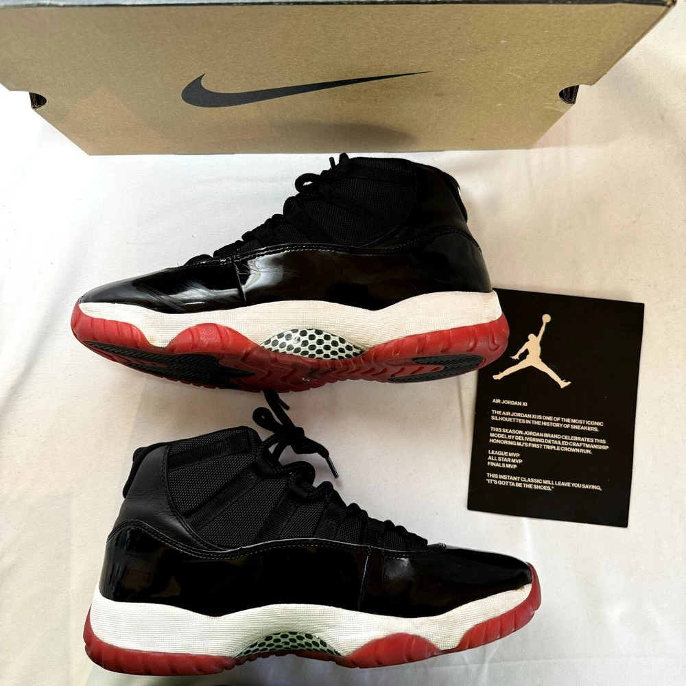 Model: Air Jordan 11 Year Manufactured: 2019 Character: Michael, Jordan Lining Material: Fabric UK Shoe Size: 9.5 Theme: Retro Shoe Width: Standard Style: Sneaker Customized: No Release Year: 2019 Insole Material: Fabric Pattern: Solid Type: Athletic Closure: Lace Up Color: Red US Shoe Size: 10.5 Outsole Material: Leather Cleat Type: Rubber Season: Fall, Spring, Summer Features: Adjustable, Comfort Vintage: No Department: Men Signed: No Country/Region of Manufacture: China EU Shoe Size: 44.5 Silhouette: Jordan 11 Retro Bred 2019 gtin13: 00193151706096 Performance/Activity: Lifestyle Style Code: 378037 061 Product Line: Air Jordan Upper Material: Leather Brand: Nike UPC: 00193151706096 Seller Notes: “100% Authentic Check pictures for condition Message me with any questions” Occasion: Activewear Shoe Shaft Style: High Top