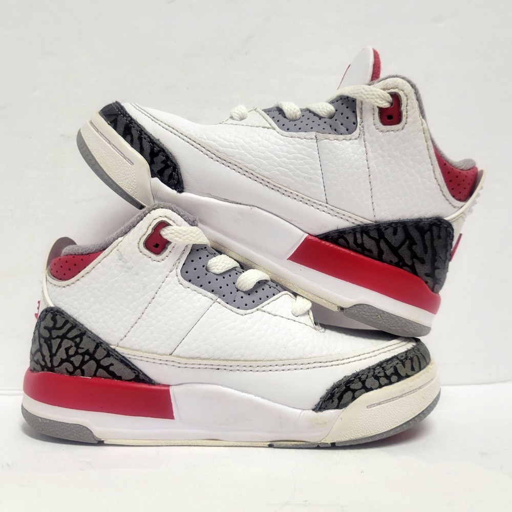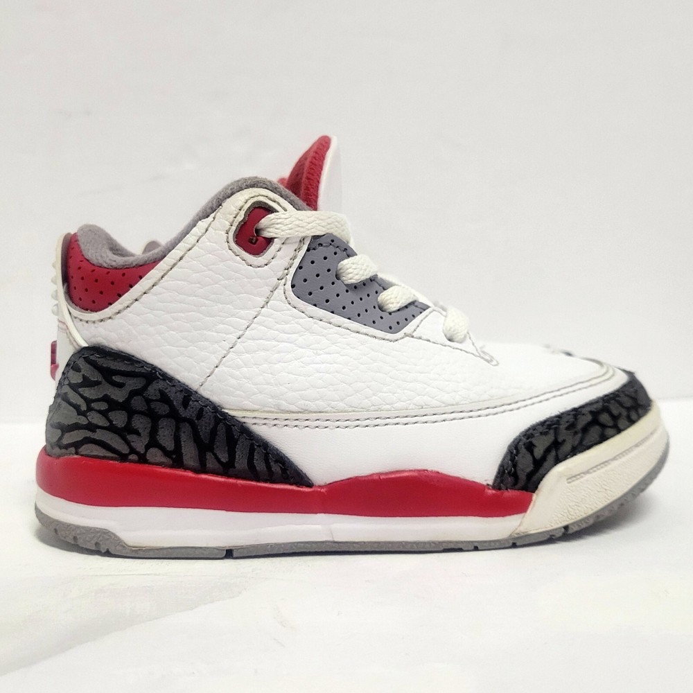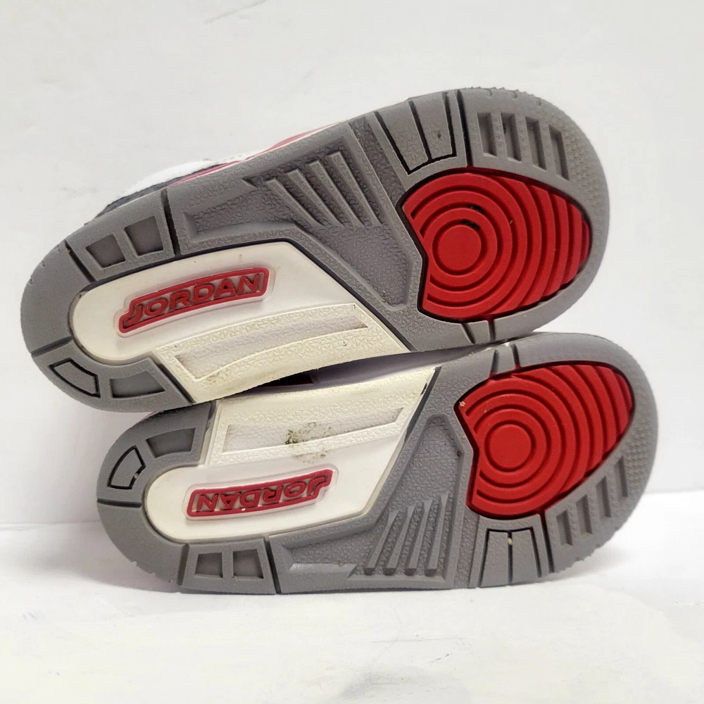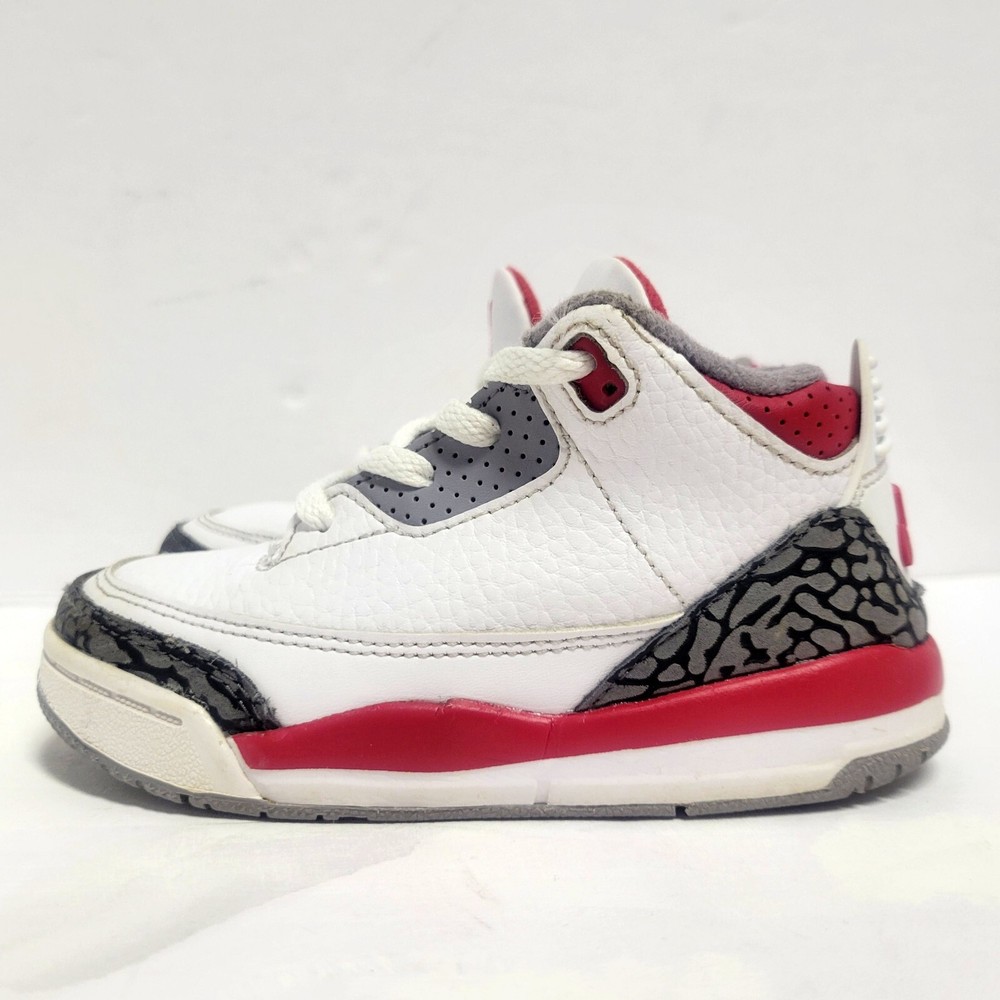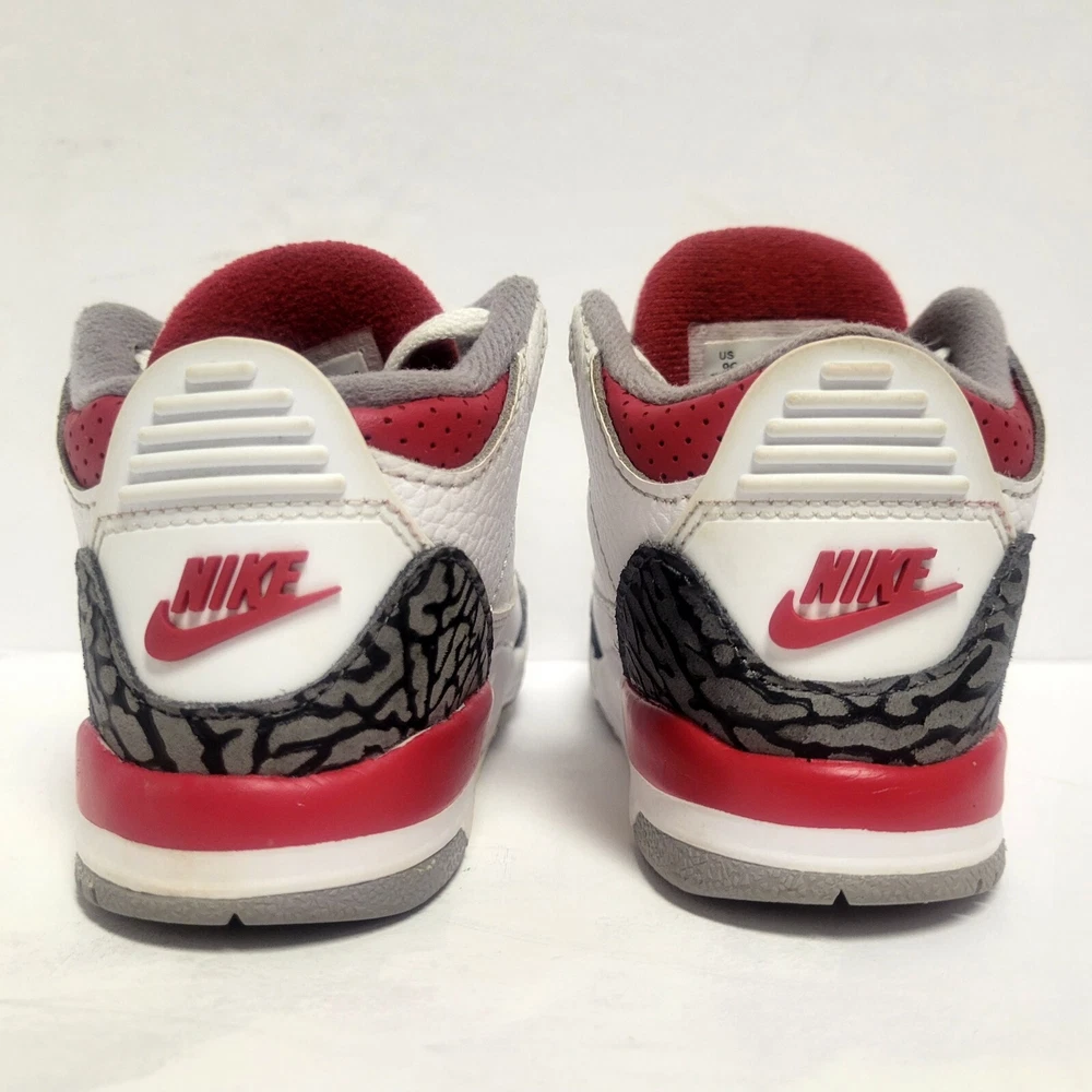 Elevate your sneaker game with these Nike Air Jordan 3 Retro Fire Red Athletic Shoes. Designed with a round toe and lace-up closure, these shoes are perfect for any occasion, from travel to casual wear. Made with high-quality leather and a rubber outsole, they are durable and long-lasting. These shoes are part of the Nike Air product line and feature moderate cushioning levels, making them ideal for gym and training, walking, weightlifting, school, and basketball. With their sleek white design and retro theme, they are sure to make a statement. Available in US shoe size 10C and UK shoe size 9.5, these shoes are a must-have for any sneaker enthusiast.