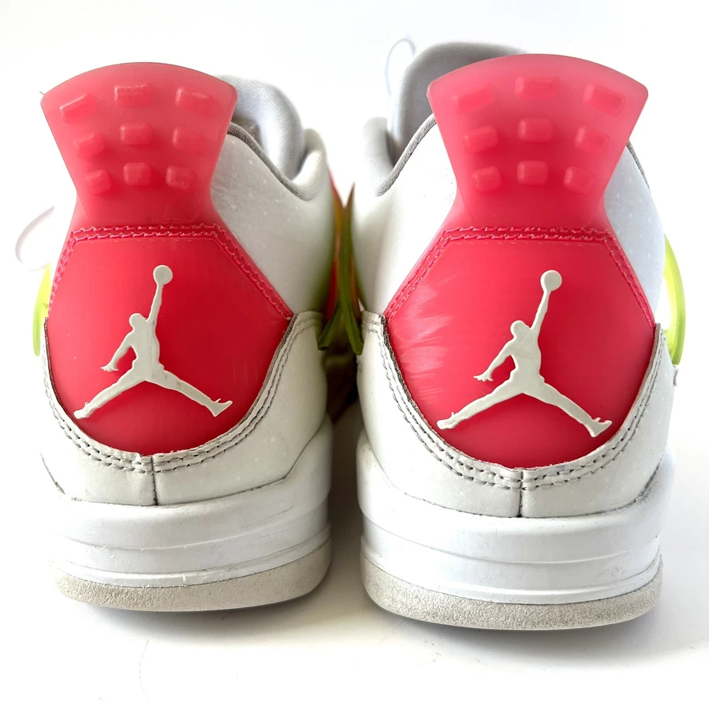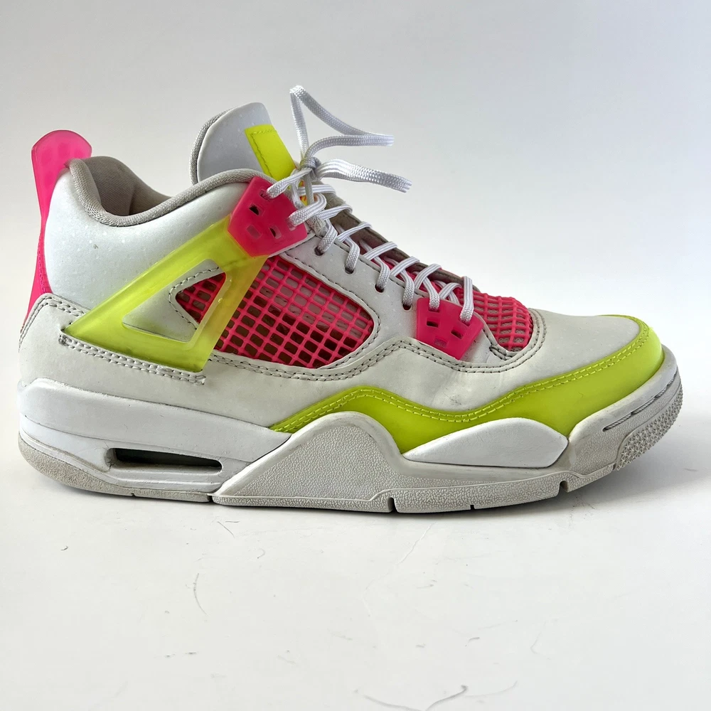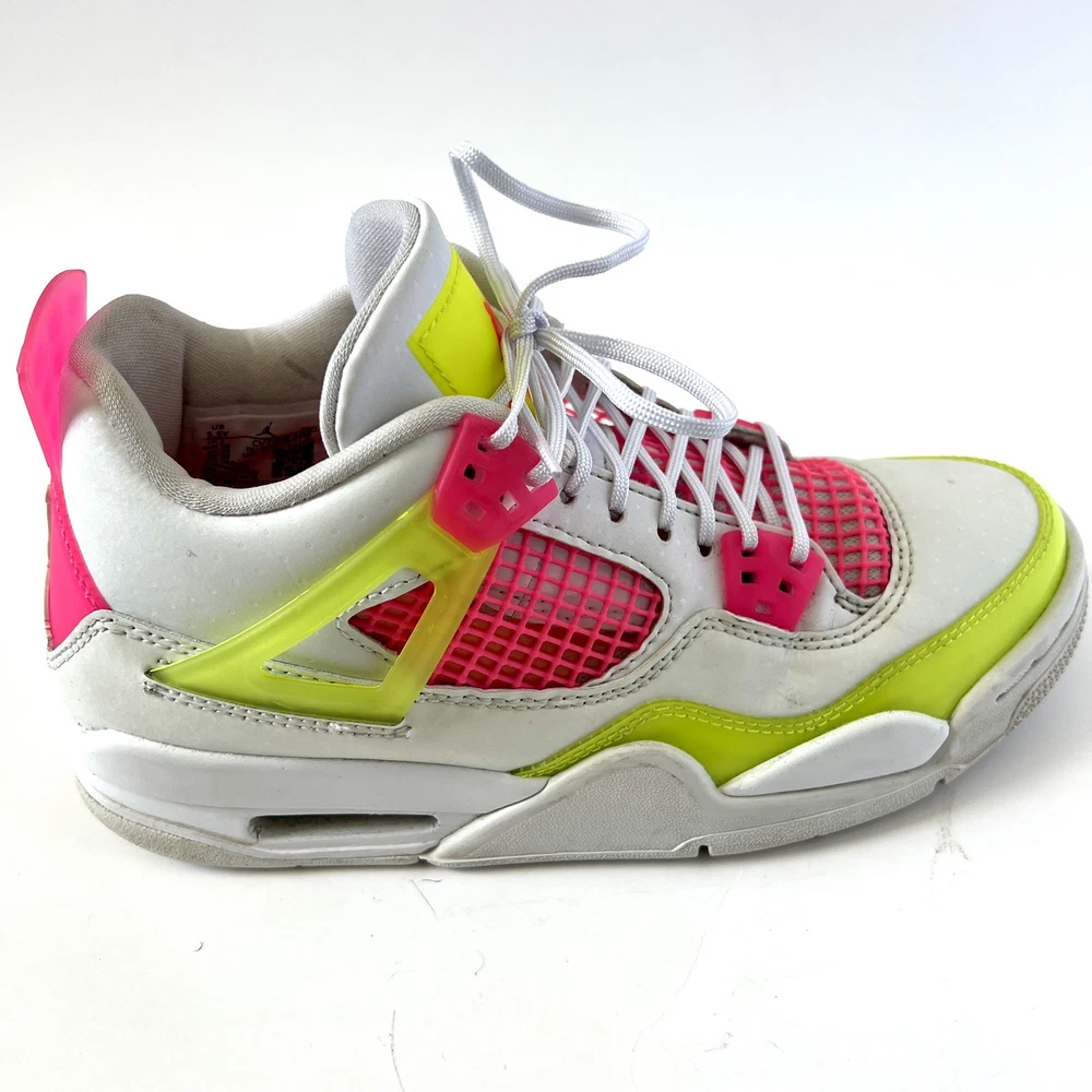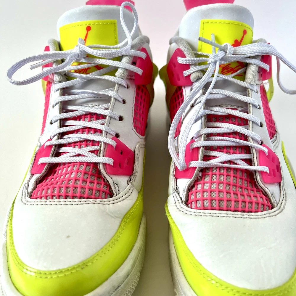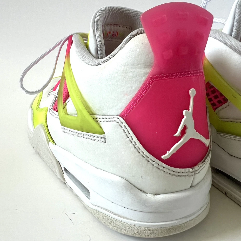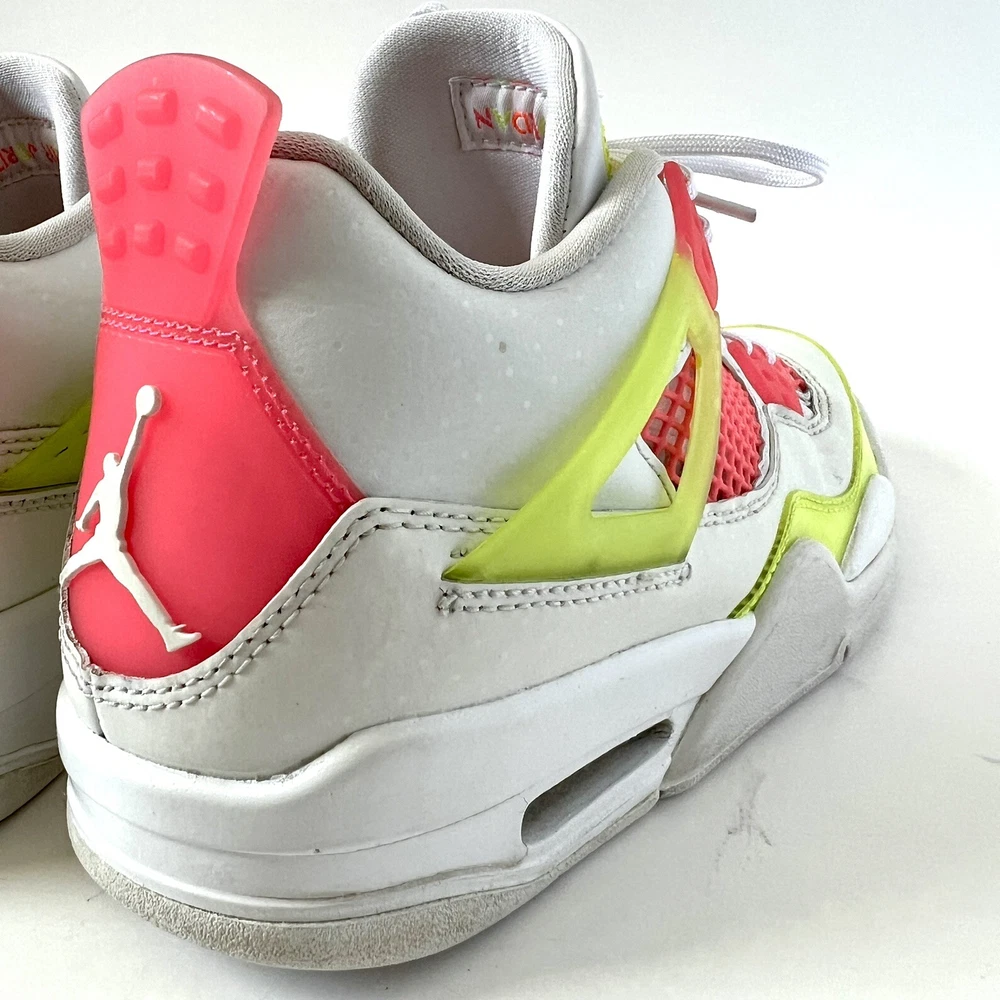 The Nike Air Jordan 4 Retro Lemon Venom White Pink CV7808-100 Youth Shoes in size 5.5Y are stylish and colorful athletic sneakers designed for unisex kids. Featuring a retro theme and Venom character, these shoes are part of the Nike Air product line with a leather upper material. The multicolor design, including white and pink hues, adds a fun and vibrant touch to any outfit. Made by Nike, a trusted brand known for quality athletic footwear, these sneakers are sure to be a hit with young sneaker enthusiasts.