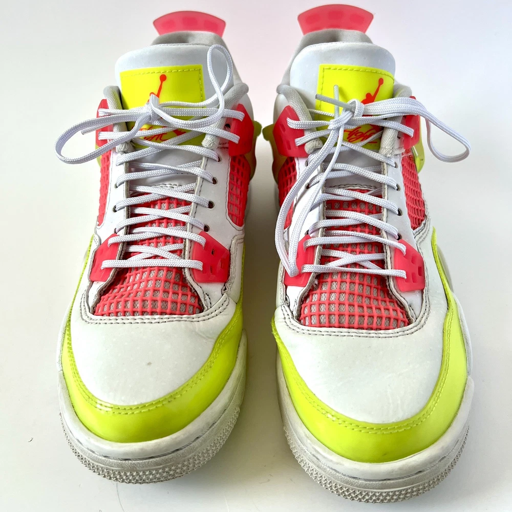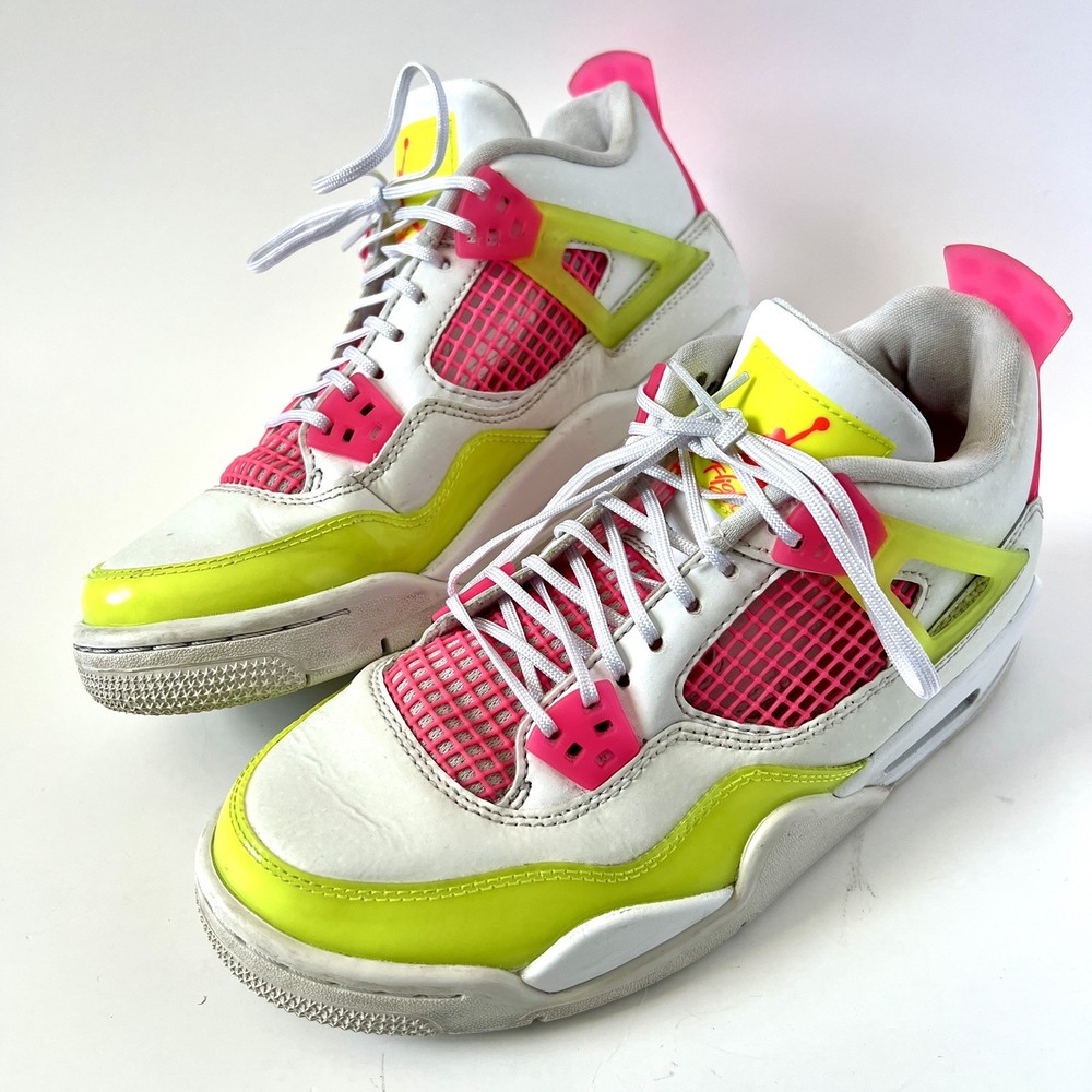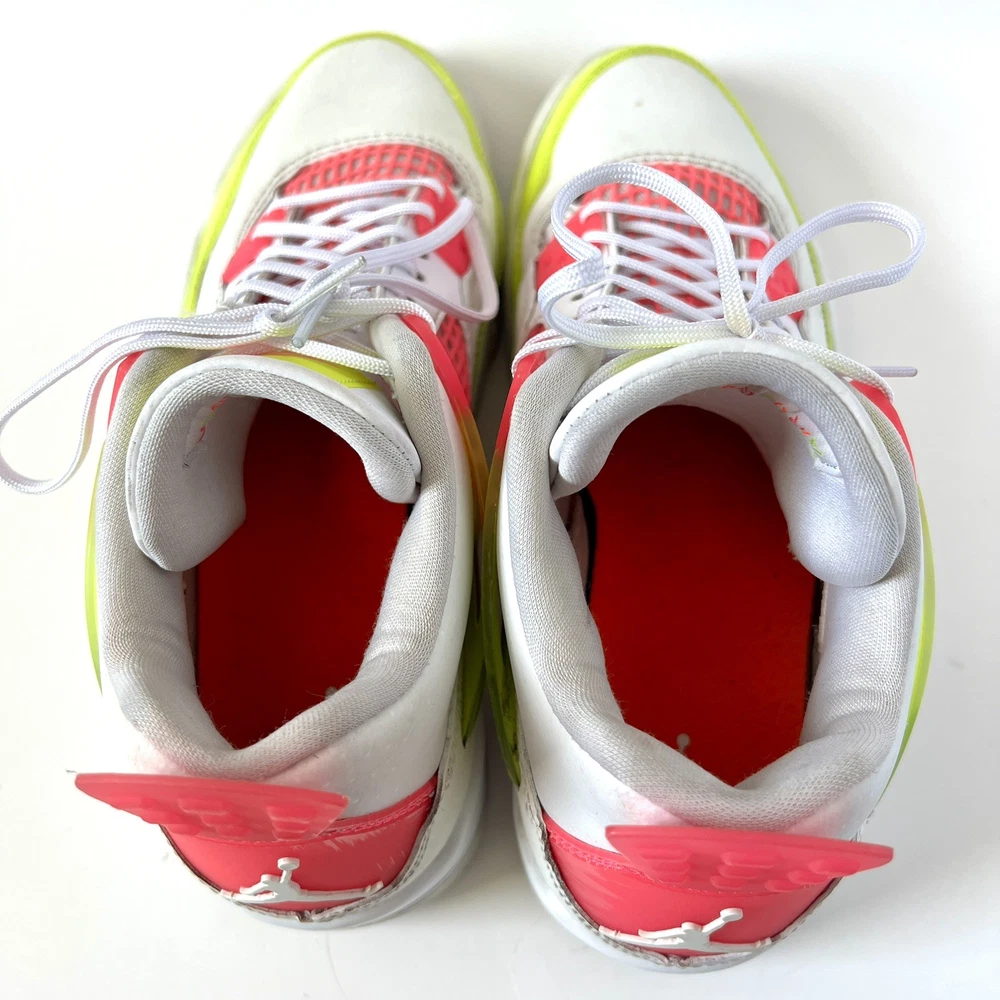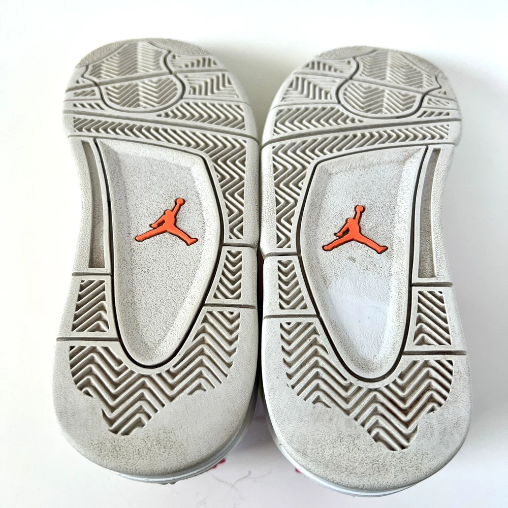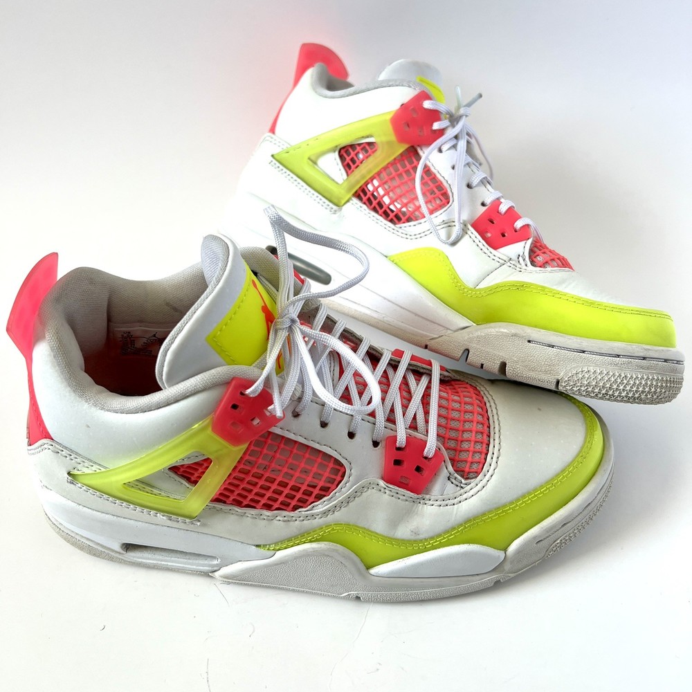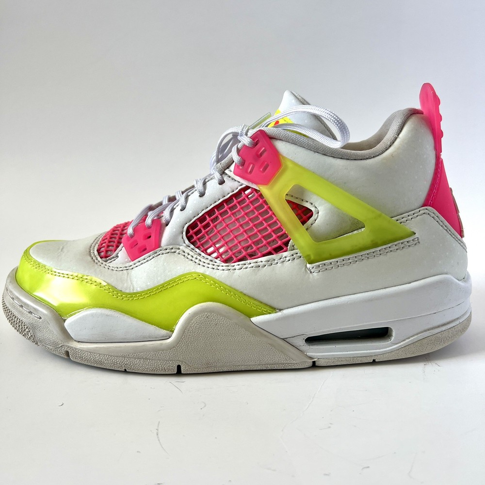 The Nike Air Jordan 4 Retro Lemon Venom White Pink CV7808-100 Youth Shoes in size 5.5Y are stylish and colorful athletic sneakers designed for unisex kids. Featuring a retro theme and Venom character, these shoes are part of the Nike Air product line with a leather upper material. The multicolor design, including white and pink hues, adds a fun and vibrant touch to any outfit. Made by Nike, a trusted brand known for quality athletic footwear, these sneakers are sure to be a hit with young sneaker enthusiasts.