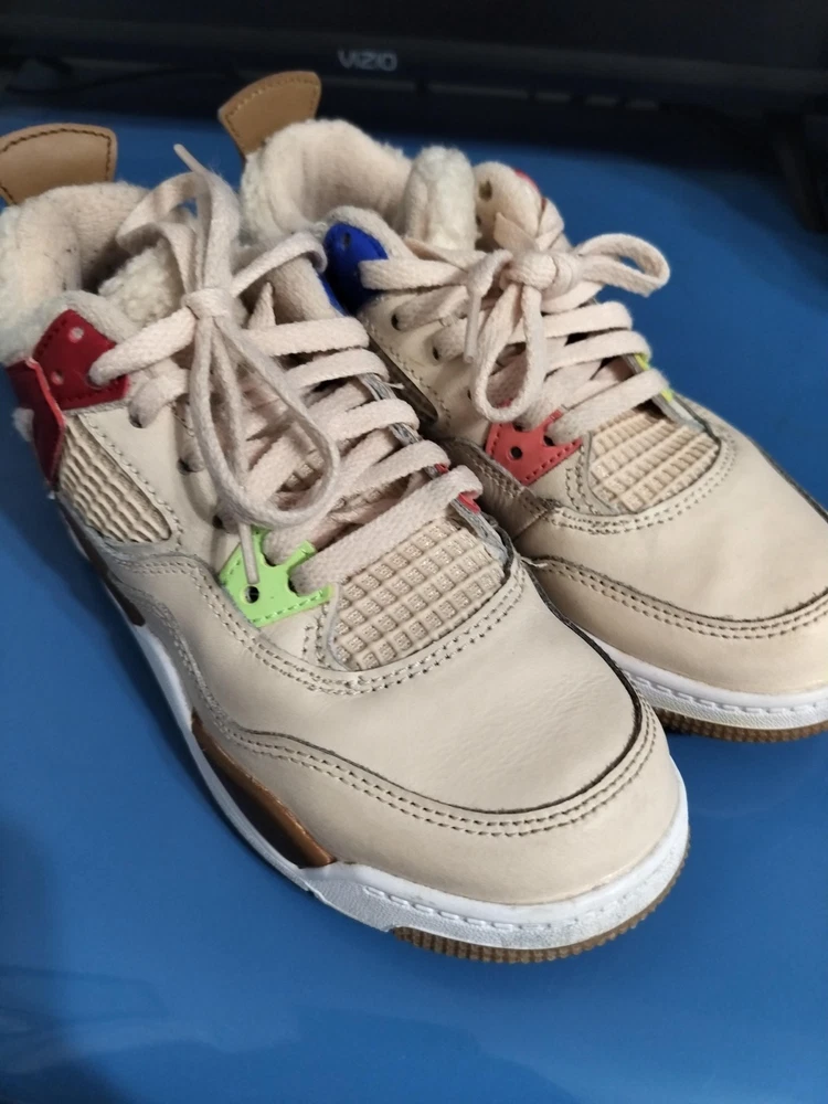 The Nike Air Jordan 4 Retro in size 1Y is a stylish and high-quality sneaker designed for unisex kids. Featuring a multicolor exterior with leather upper material, this retro-themed shoe is part of Nike's Air product line. With its athletic design and iconic Air Jordan 4 model, these sneakers are perfect for active boys looking to make a statement with their footwear.